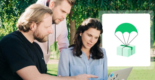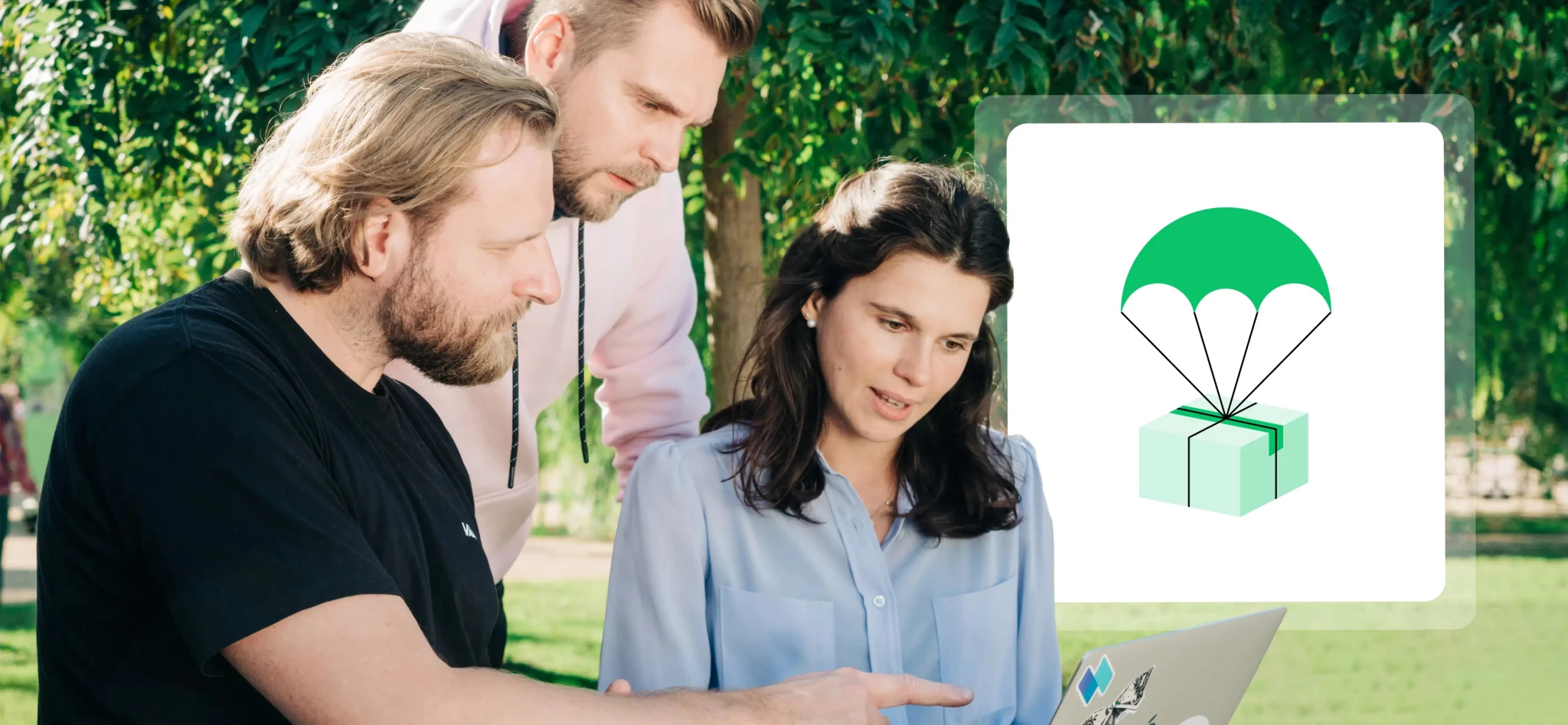 Agathe, CPO de MailerLite, con dos compañeros de trabajo.