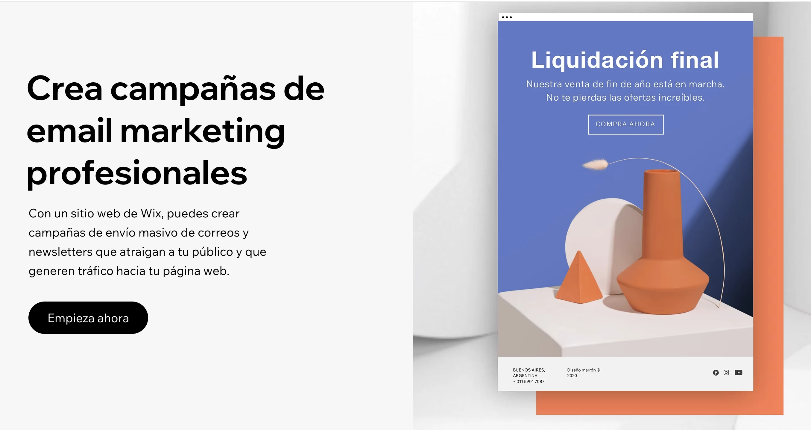 Wix es más conocido por su creador de sitios web y sus funciones de tienda online. Pero también es un proveedor de email marketing.