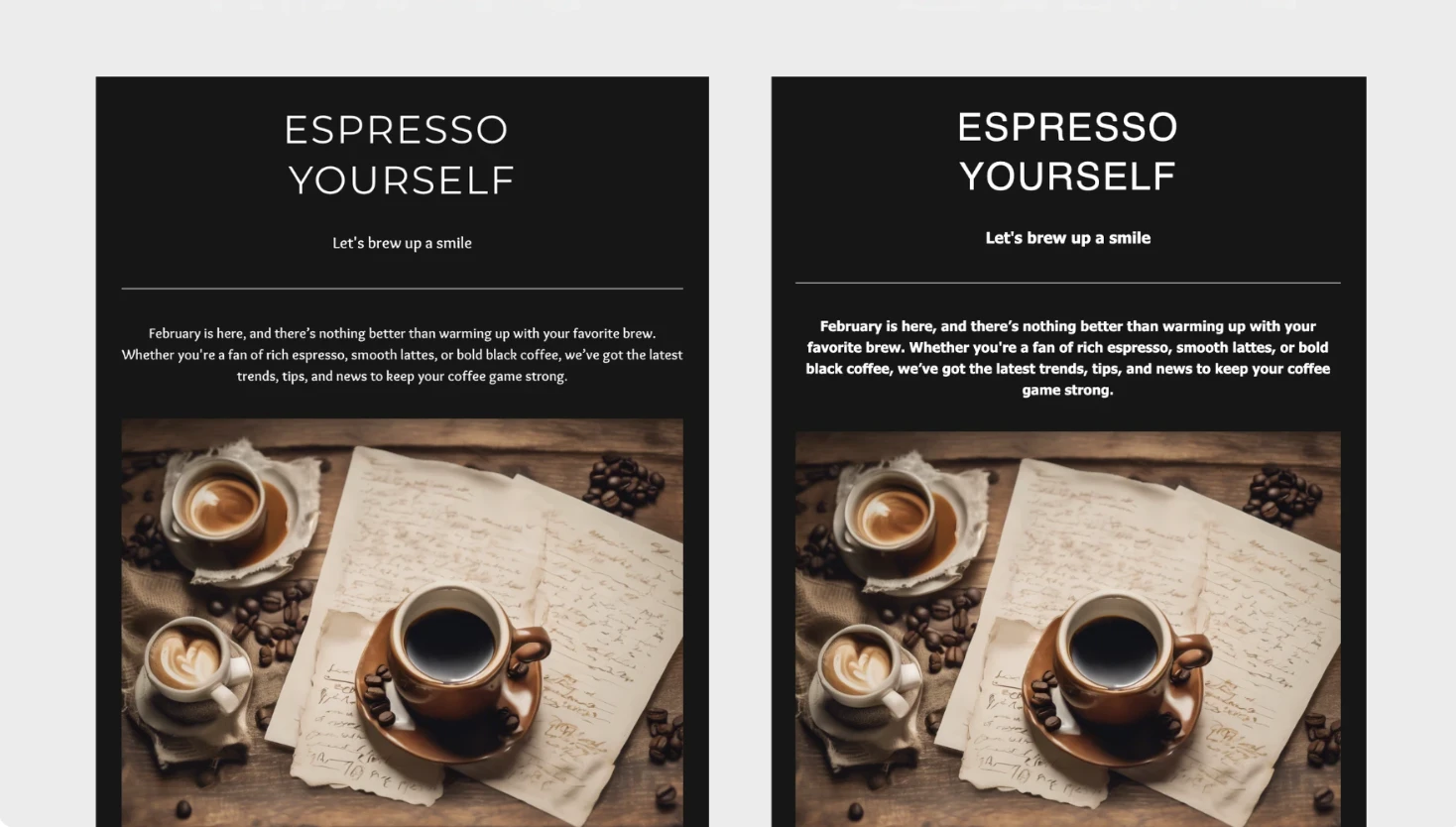 Cuando le pedí a la plataforma que simplemente "escribiera un newsletter sobre café", la primera vez me devolvió un mensaje de error, pero en mi segundo intento, creó un diseño sugerido completo para mi carta temática sobre el café (ver más abajo).