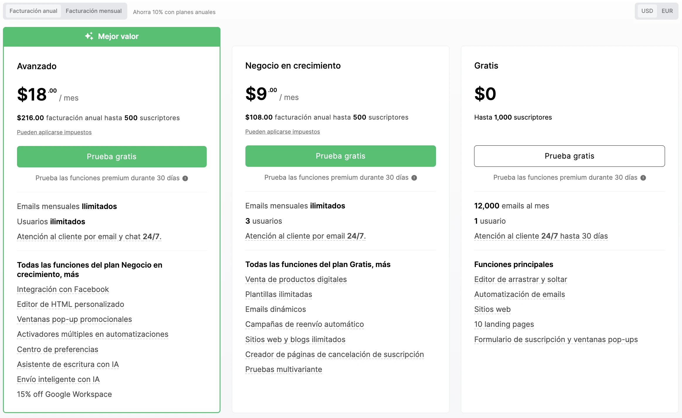 Si te tomas en serio el email marketing, MailerLite te ofrece una alternativa más económica y avanzada.