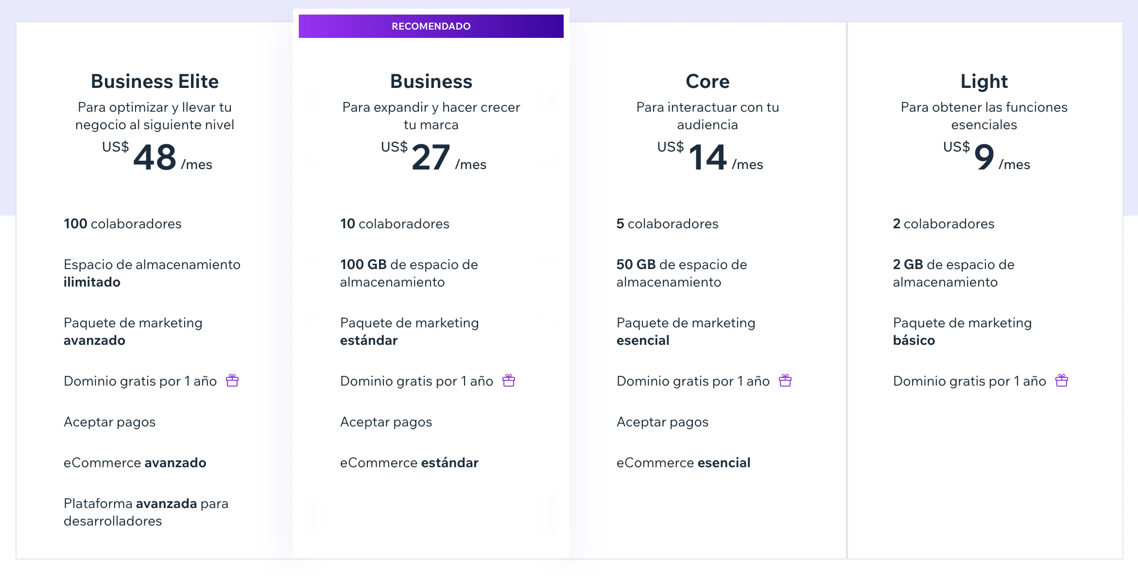 Wix tiene un plan gratuito que te permite enviar hasta 200 correos electrónicos al mes. Los planes de pago empiezan en 10 $/mes para 500 correos electrónicos y llegan hasta 49 $/mes para 1 millón de correos electrónicos.