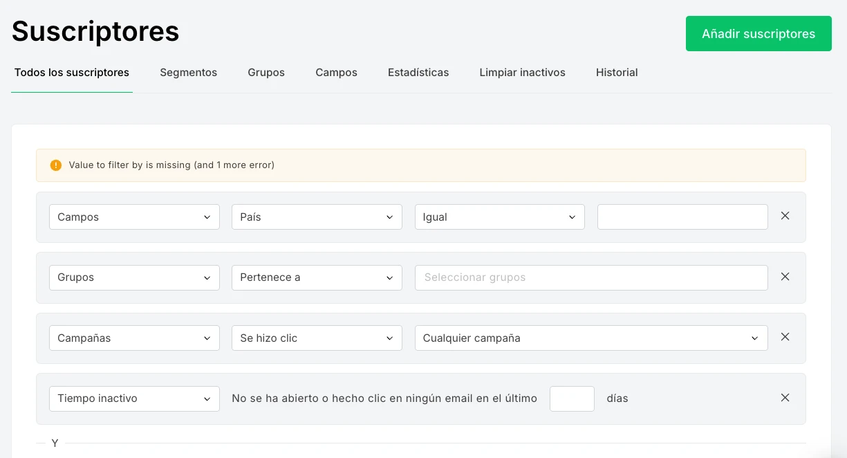MailerLite: Ofrece una segmentación más avanzada, que también te permite agrupar a tus suscriptores por formulario de suscripción y combinar diferentes segmentos.