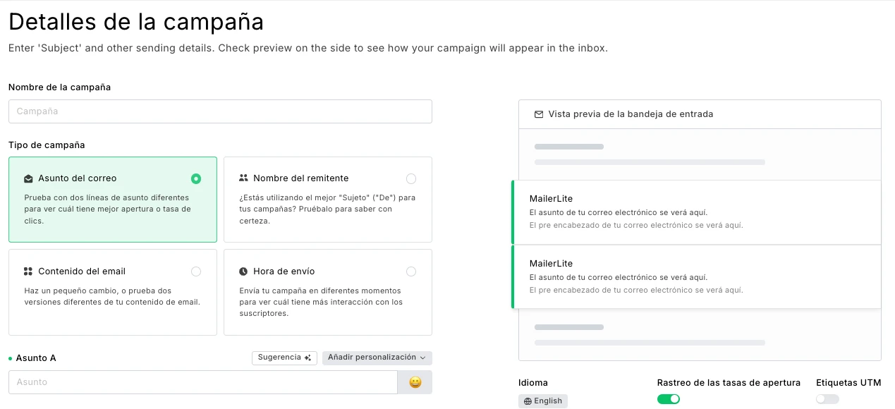 MailerLite: Ofrece pruebas de variables múltiples y pruebas A/B para que puedas averiguar qué es lo que más les gusta a tus destinatarios de correo electrónico.