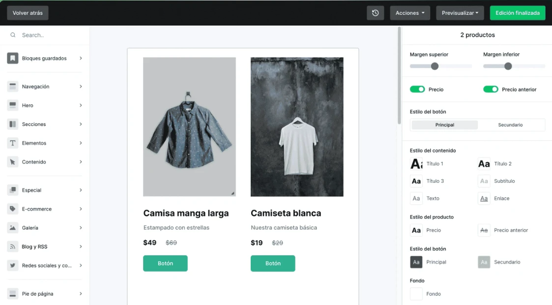 Wix: Ofrece Wix Stores, una plataforma profesional de comercio electrónico, pero carece de funciones avanzadas de diseño de correo electrónico para comercializar los productos y servicios de forma eficaz.
