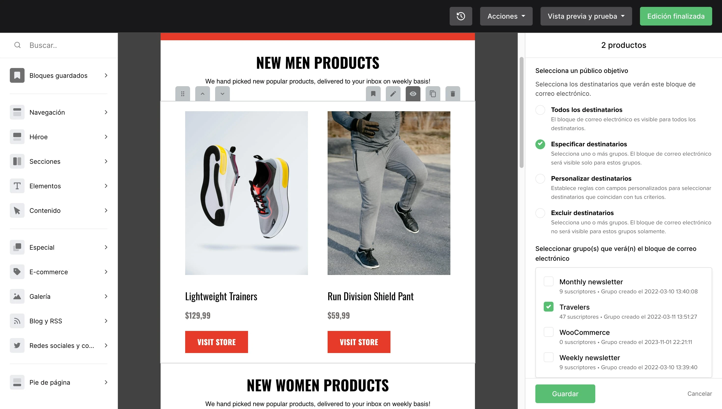 Utiliza tus segmentos para crear y enviar correos electrónicos dirigidos a las necesidades de un público concreto. Por ejemplo, podrías crear segmentos basados en el tipo de producto que interesa a la gente, y luego enviar correos electrónicos con actualizaciones relevantes.