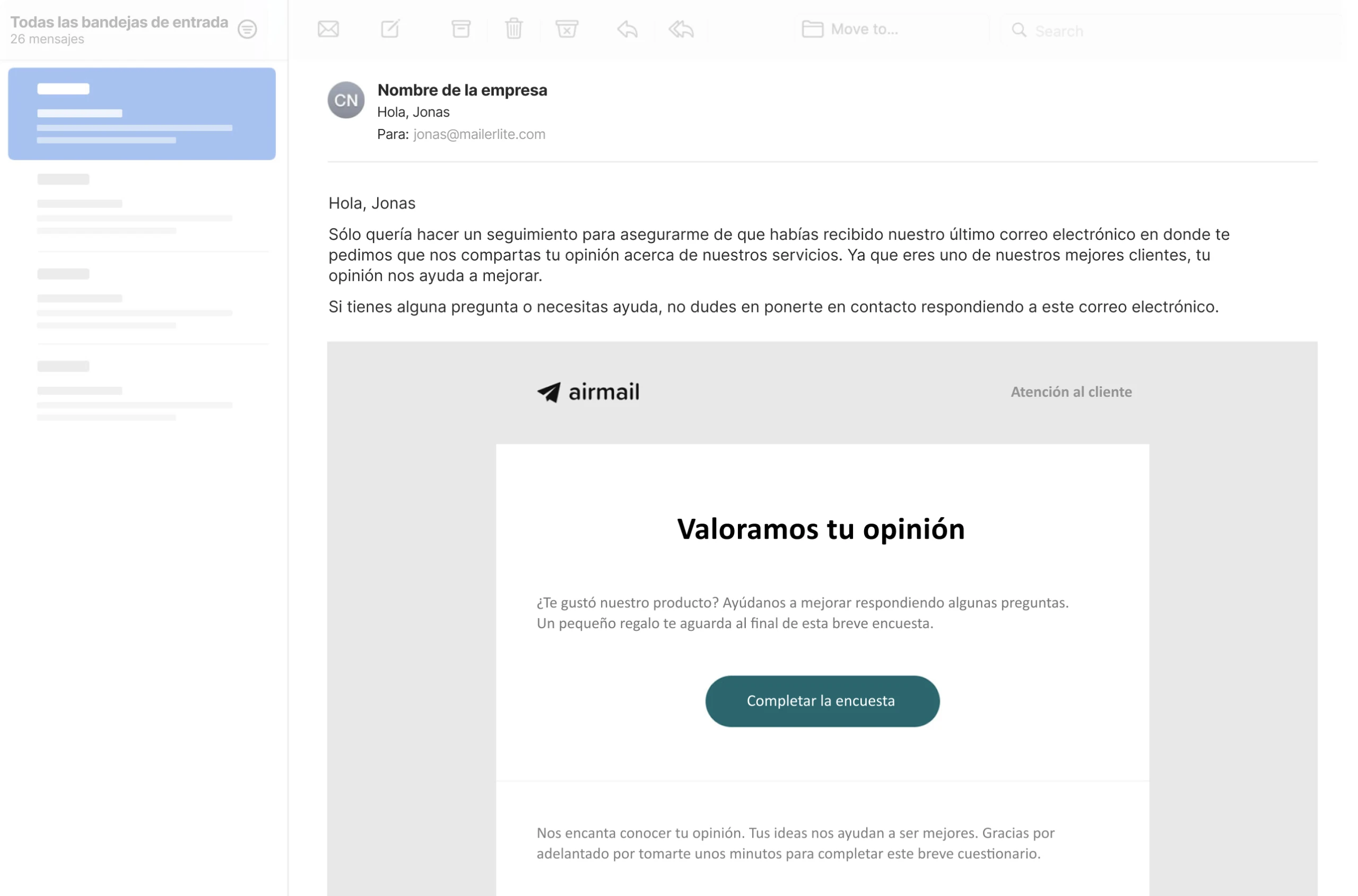Aumenta la posibilidad de que abran tu email añadiendo un mensaje personal en la parte superior de tu correo electrónico. Tus suscriptores apreciarán el esfuerzo adicional y será más probable que interactúen con tu marca.