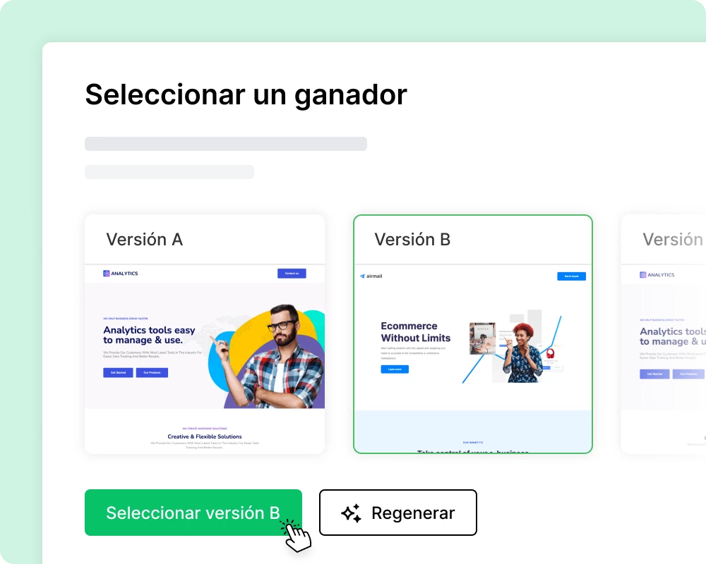 Prueba hasta 5 versiones de la landing page dividiendo el tráfico entre ellas.