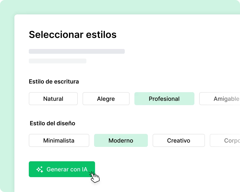 Crea tu landing page en tiempo récord. Dale una indicación a nuestro generador con IA y obtendrás una landing page completa que podrás personalizar según tus necesidades.