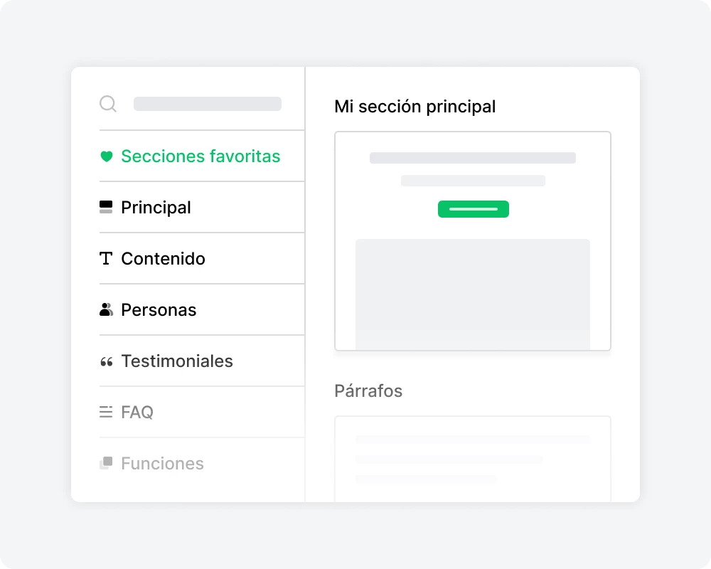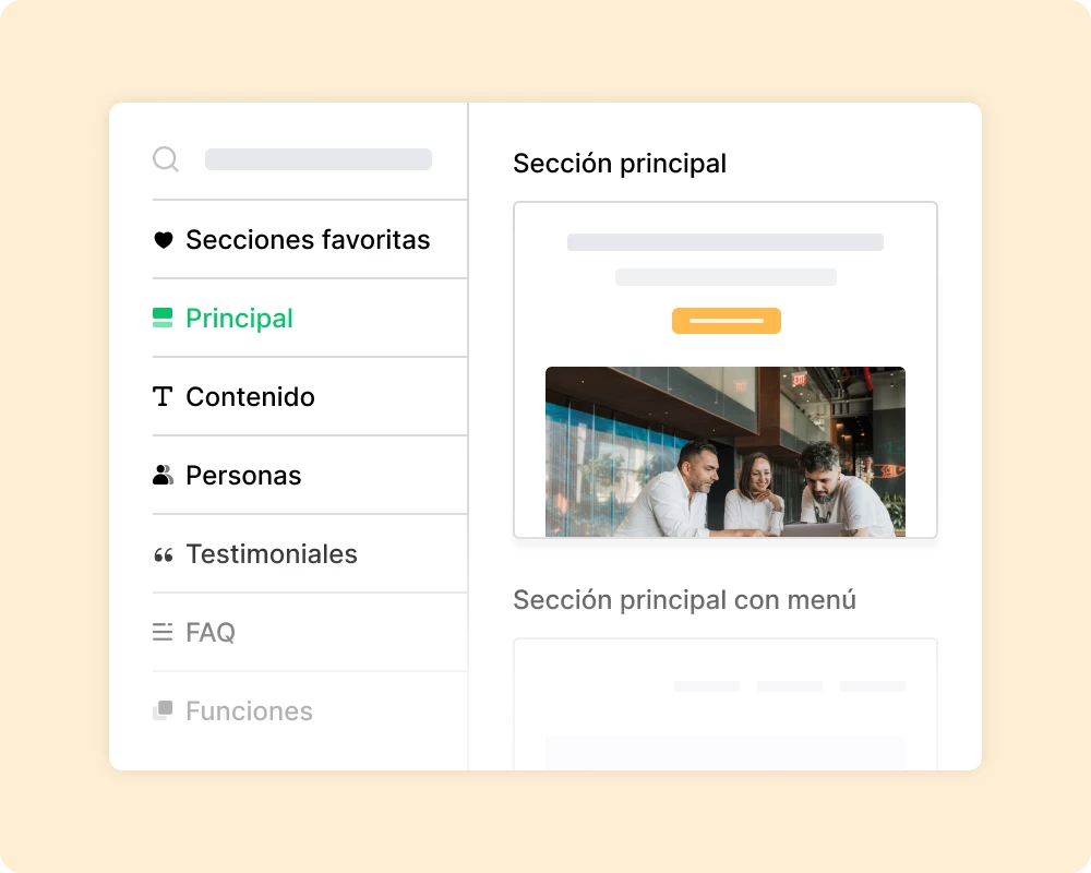 Elige entre más de 70 secciones con diseño profesional para personalizar fácilmente secciones principales, CTA, imágenes, encuestas y mucho más.