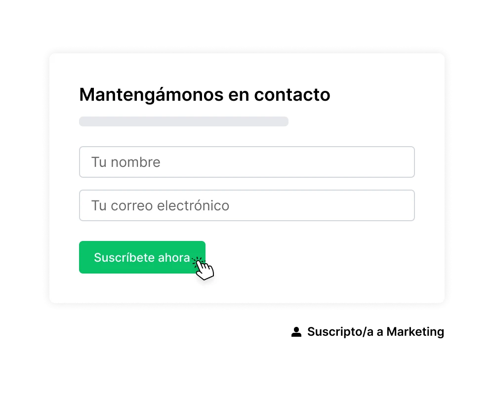Envía correos electrónicos personalizados utilizando los datos recogidos en los formularios de las landing pages. Segmenta y agrupa automáticamente a los suscriptores en función de la interacción con el formulario y el correo electrónico.
