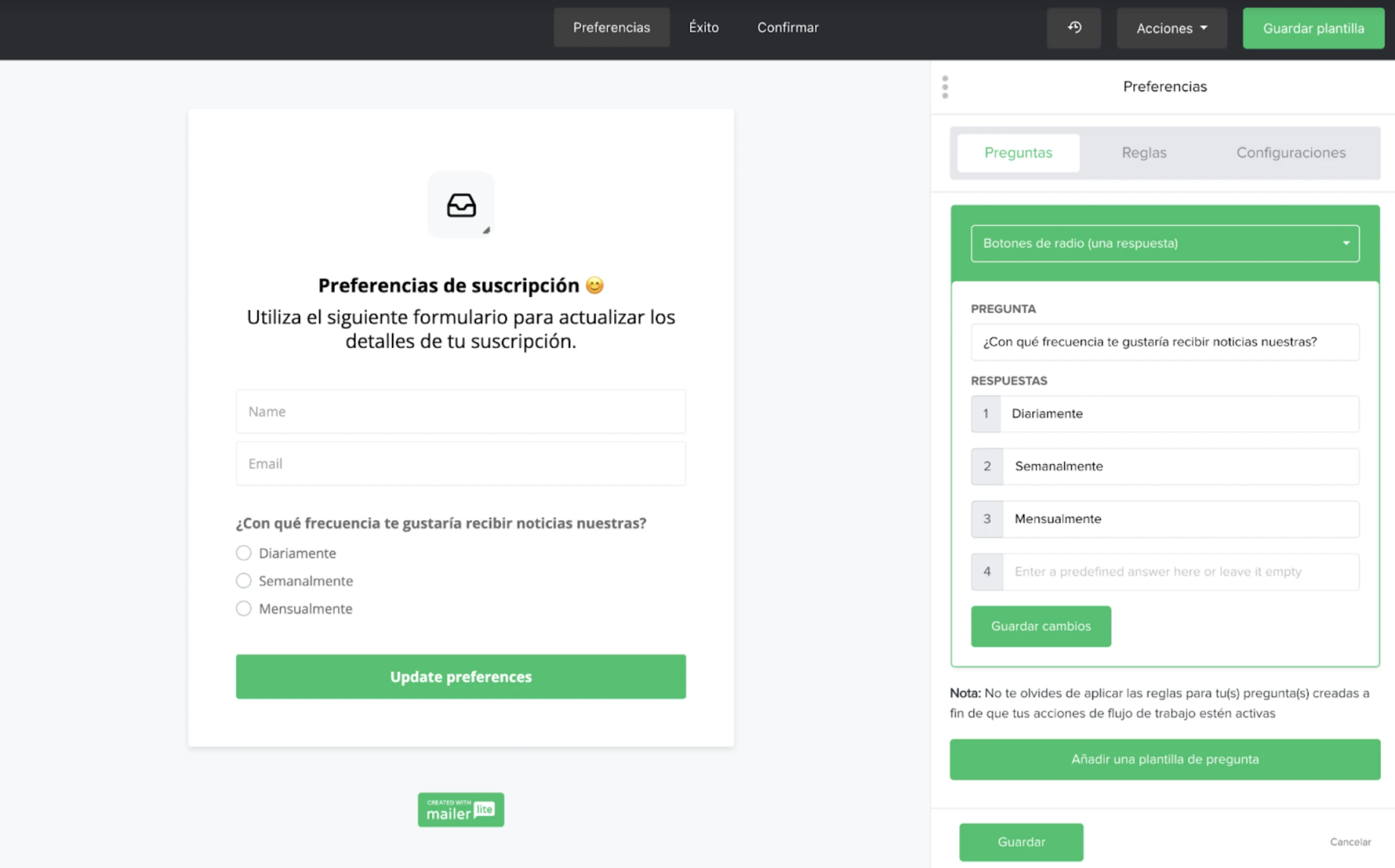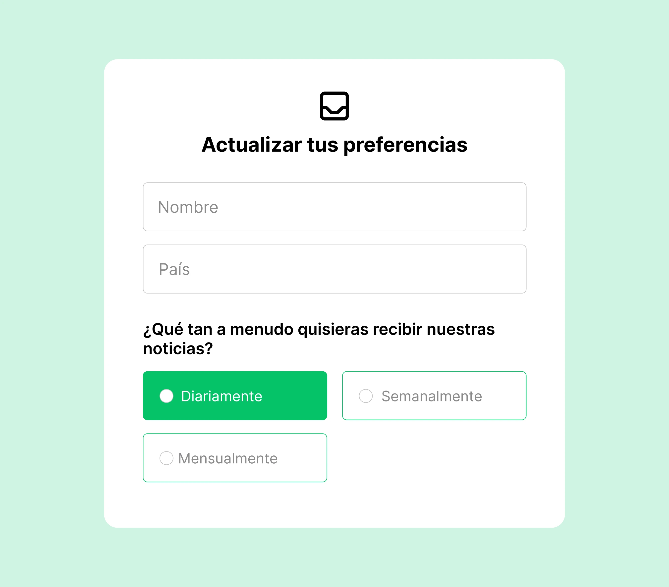 Deja que los suscriptores elijan la frecuencia con la que recibirán tus correos electrónicos y el momento que prefieran. ¡El correo electrónico adecuado en el momento oportuno!