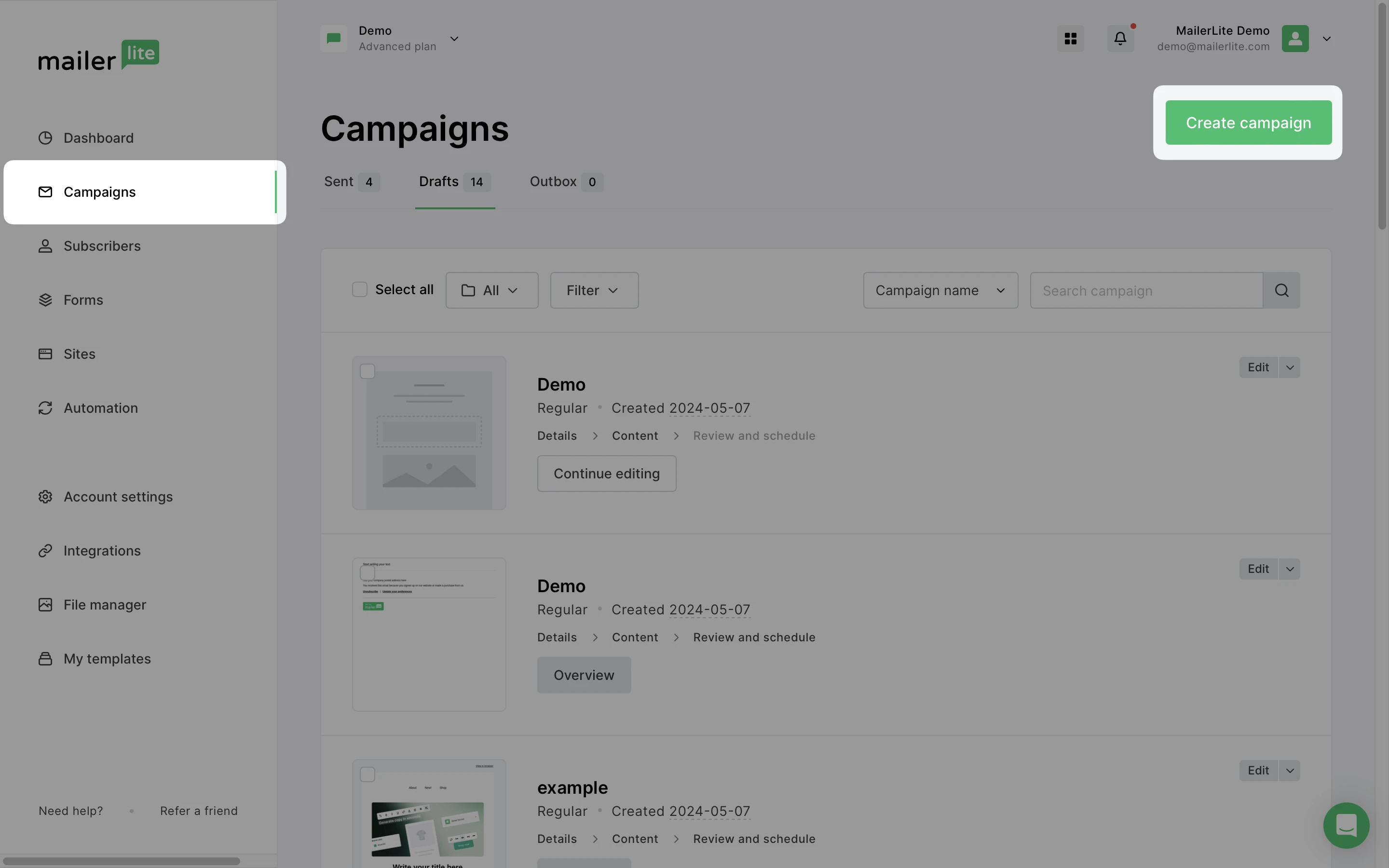 🛠️ Para más información sobre cómo crear una campaña en MailerLite, visita nuestra guía sobre Cómo crear y programar una campaña.