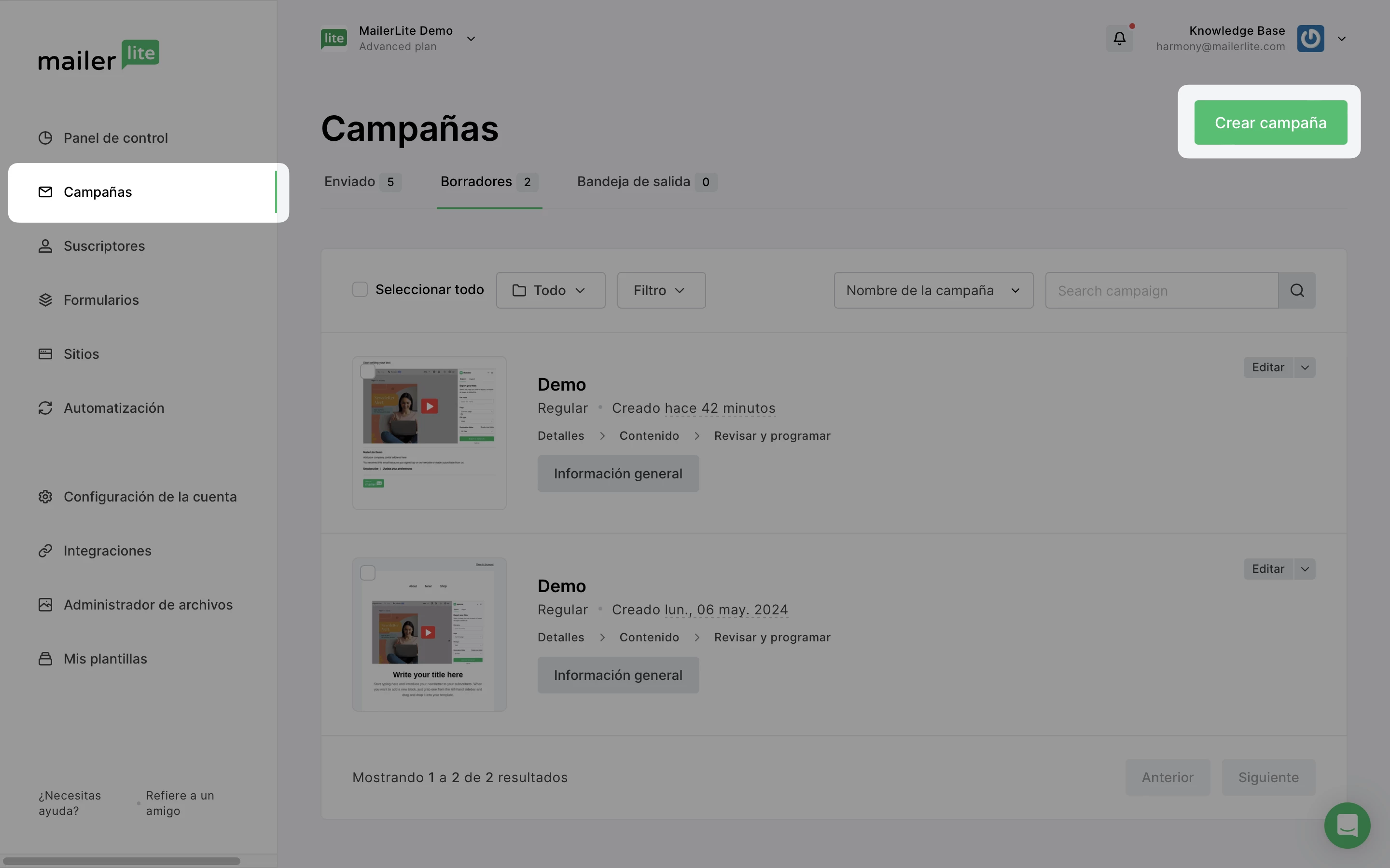 En MailerLite, puedes enviar correos electrónicos a los suscriptores utilizando tanto automatizaciones como campañas.