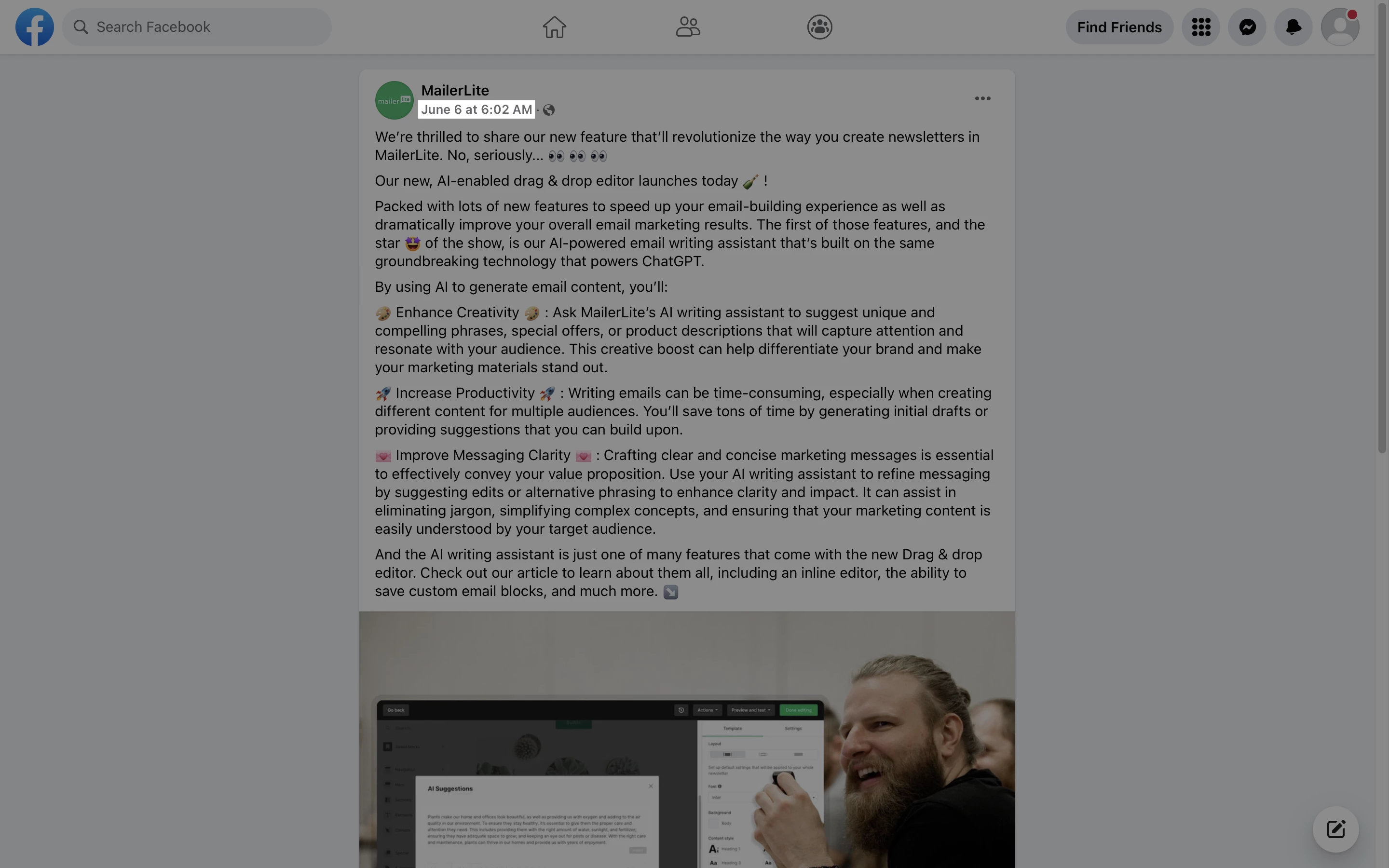 Para insertar una publicación de Facebook en tu newsletter:
