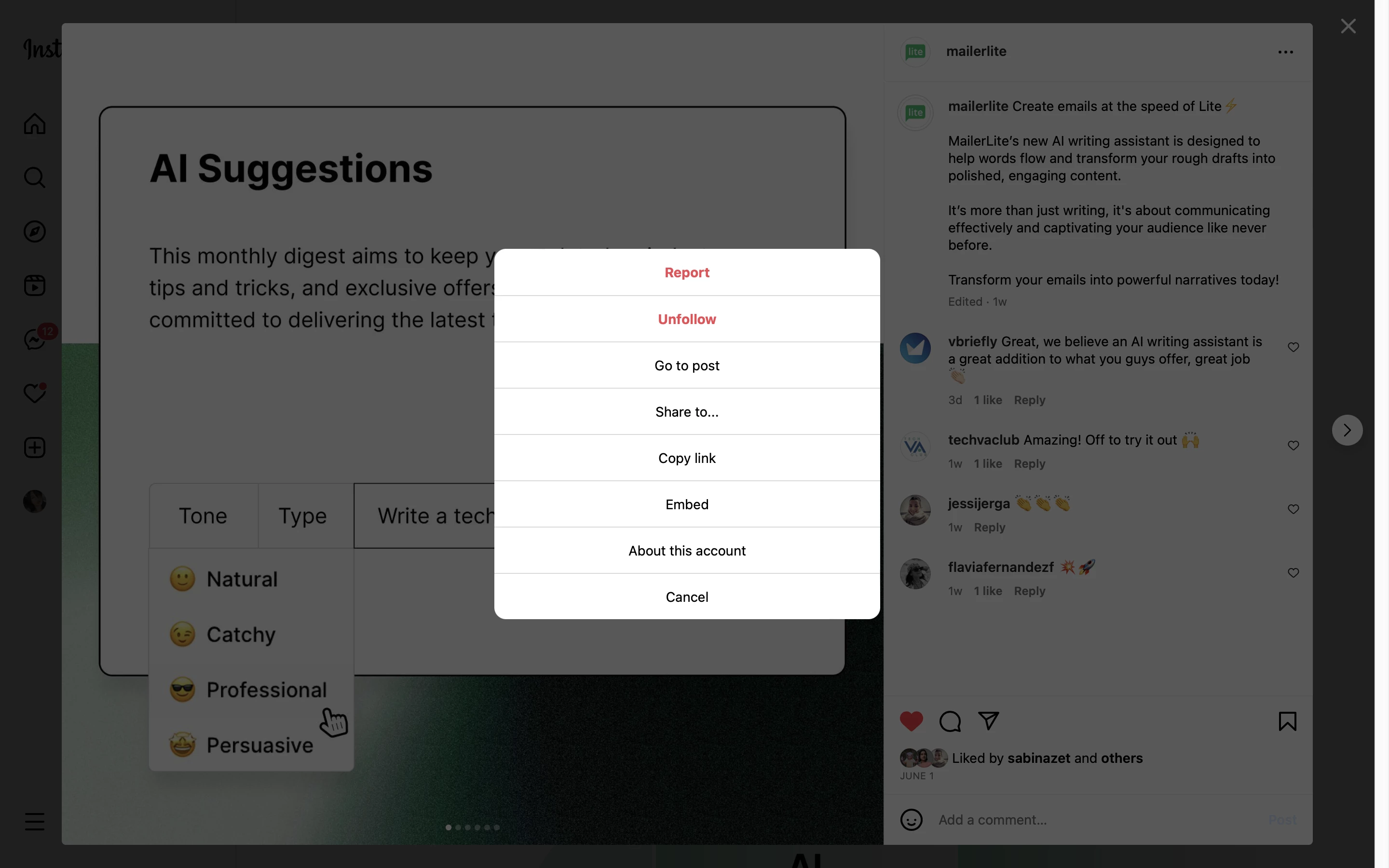 Para insertar una publicación de Instagram en tu newsletter: