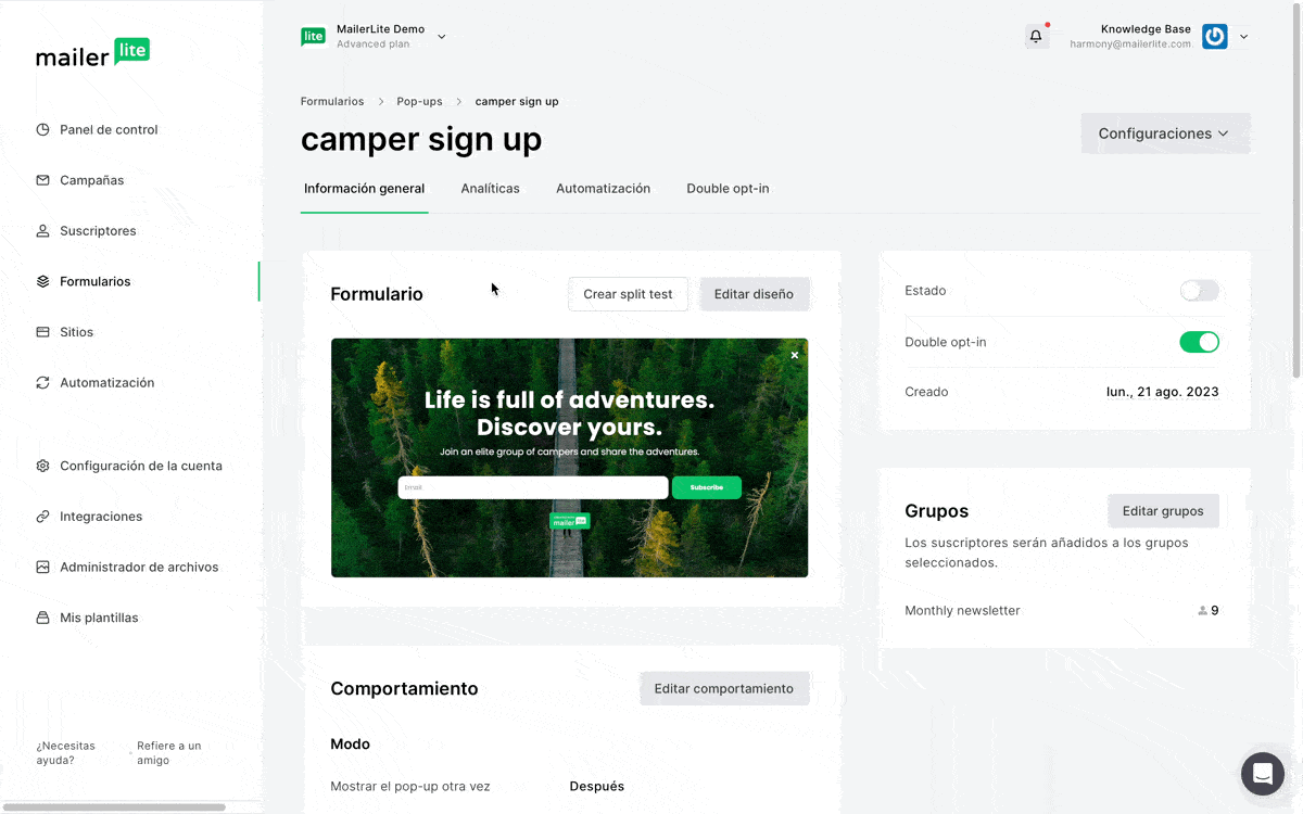 Cómo instalar un formulario pop-up de MailerLite en un sitio web o una landing page de MailerLite