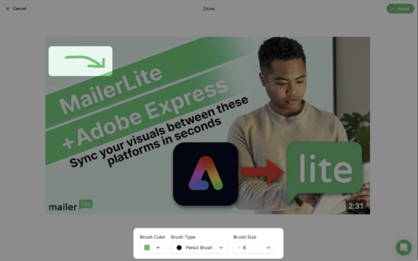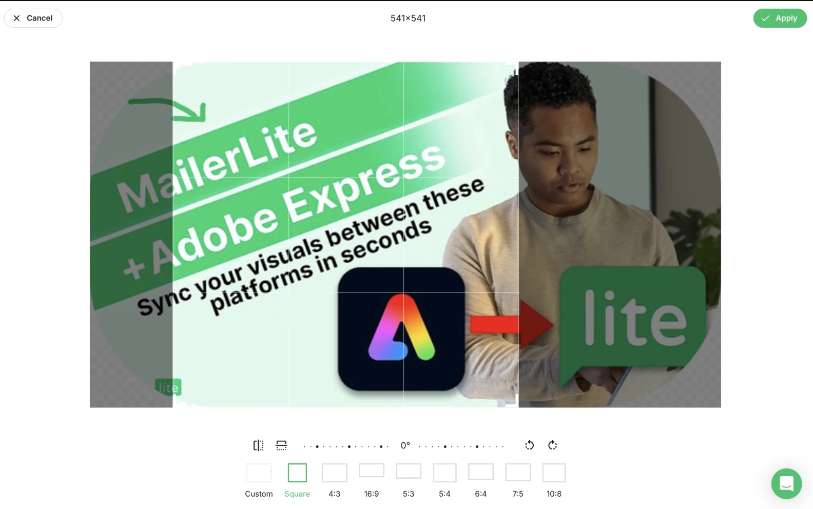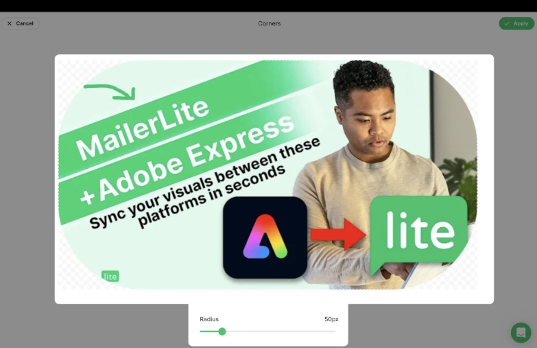 Puedes cambiar el tamaño de las imágenes en todos los editores de campañas y landing pages de MailerLite.