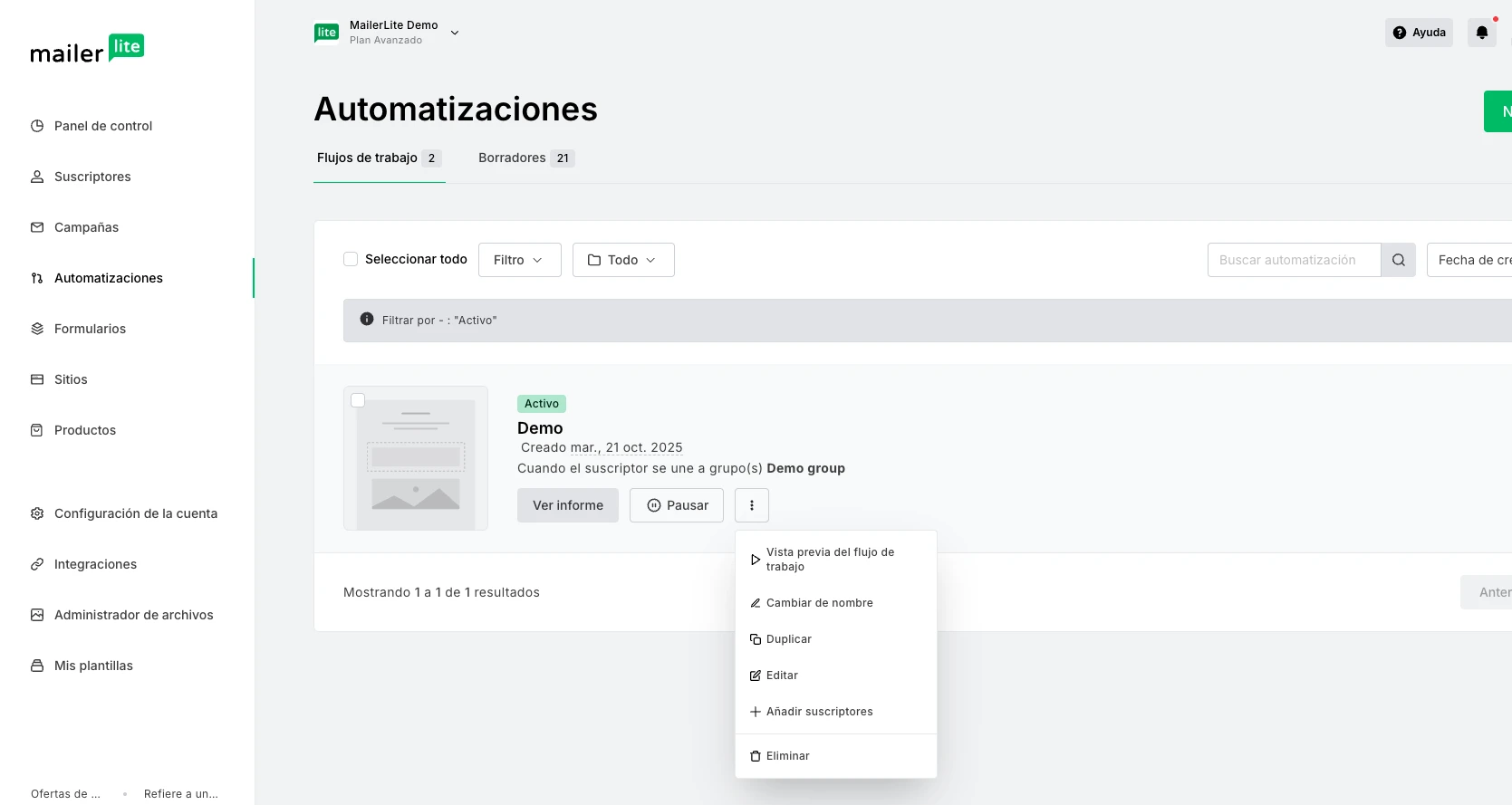 💡 Los suscriptores solo se pueden agregar a flujos de trabajo activos.
