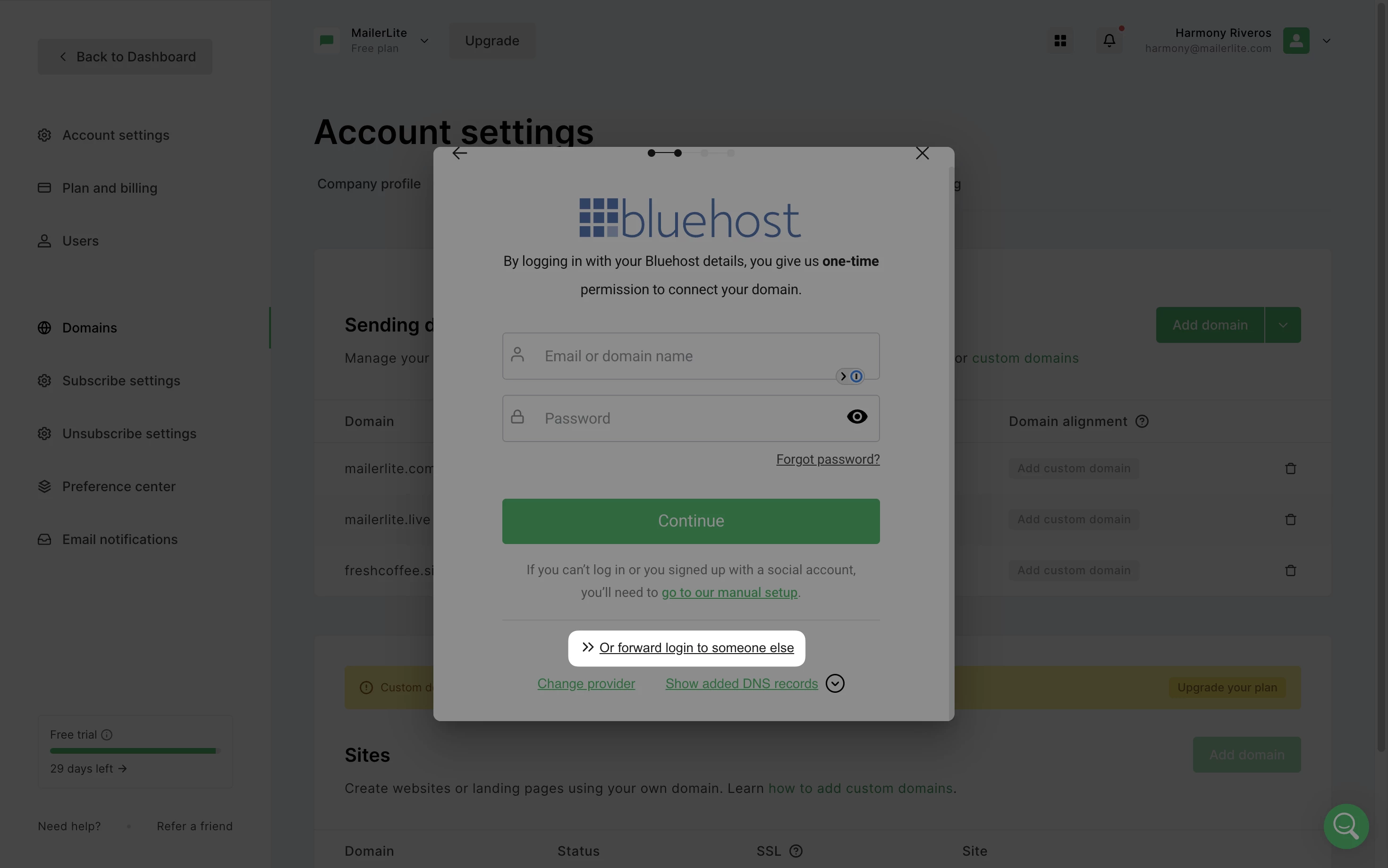 3. Luego, sigue los pasos para autorizar a MailerLite a configurar tus DNS y añadir los registros necesarios.