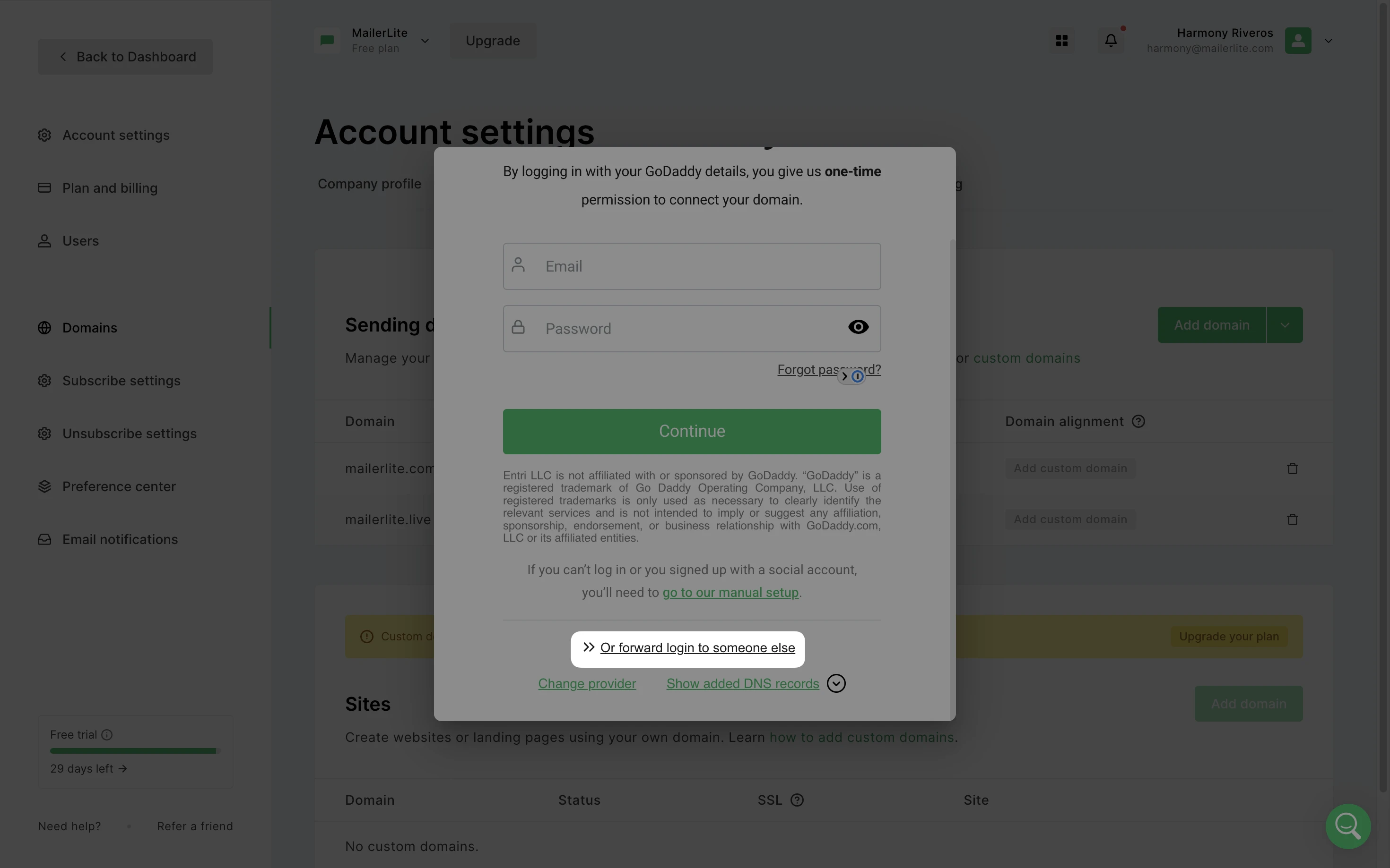 3. Luego, sigue los pasos para autorizar a MailerLite a configurar tus DNS y añadir los registros necesarios.