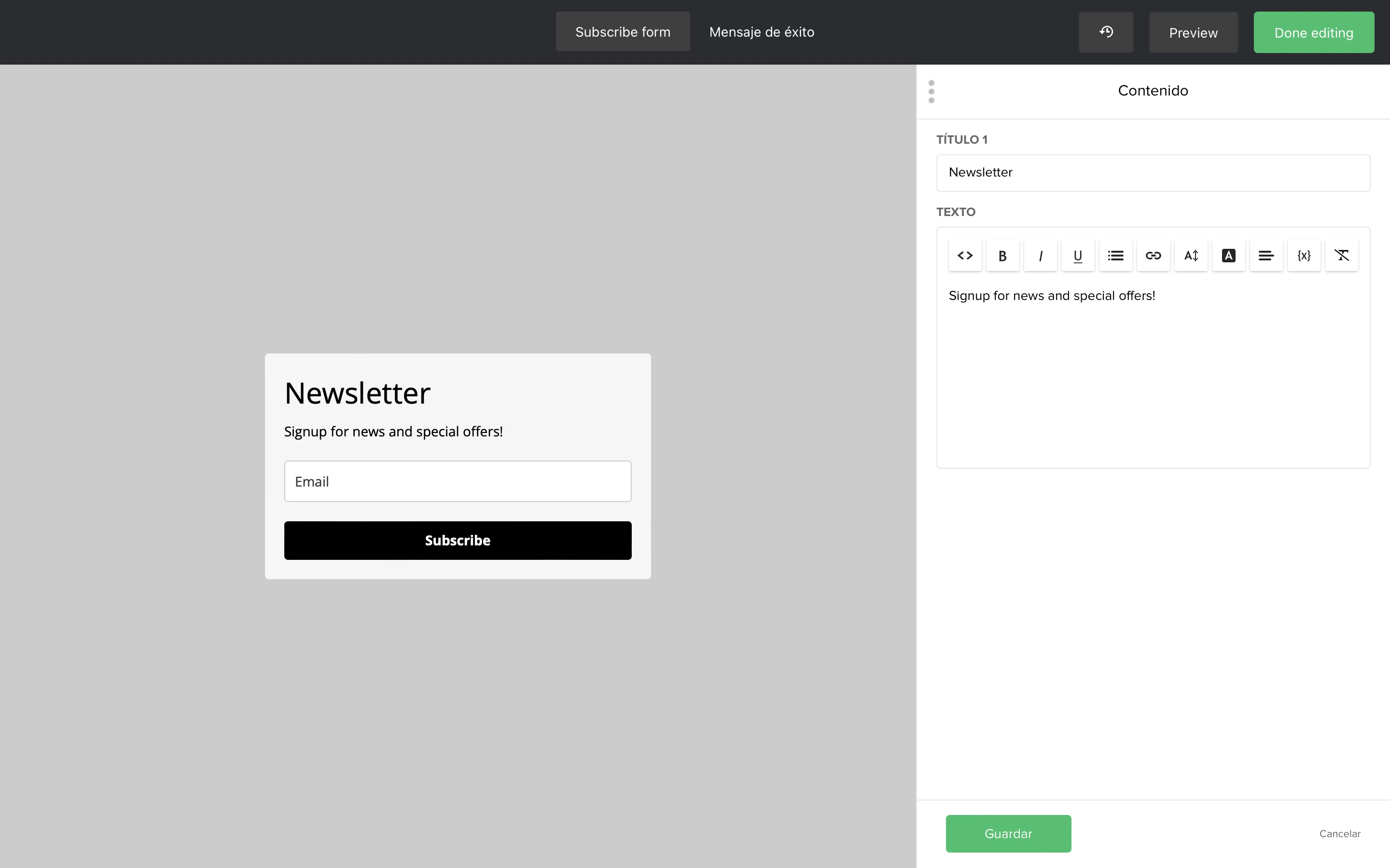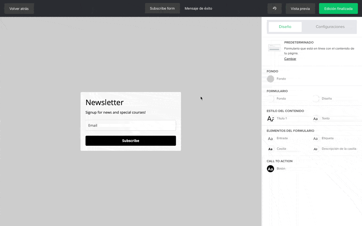 El mensaje de éxito es lo que ven tus suscriptores después de completar con éxito tu formulario. Para editar el mensaje de éxito: