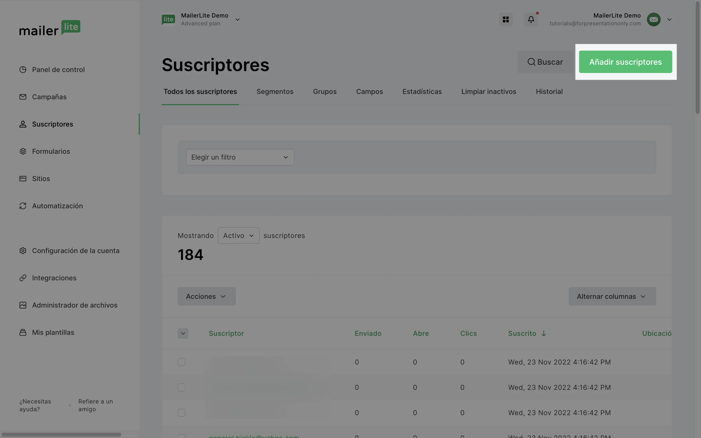 Para importar tus suscriptores a Mailerlite, sigue estos pasos: