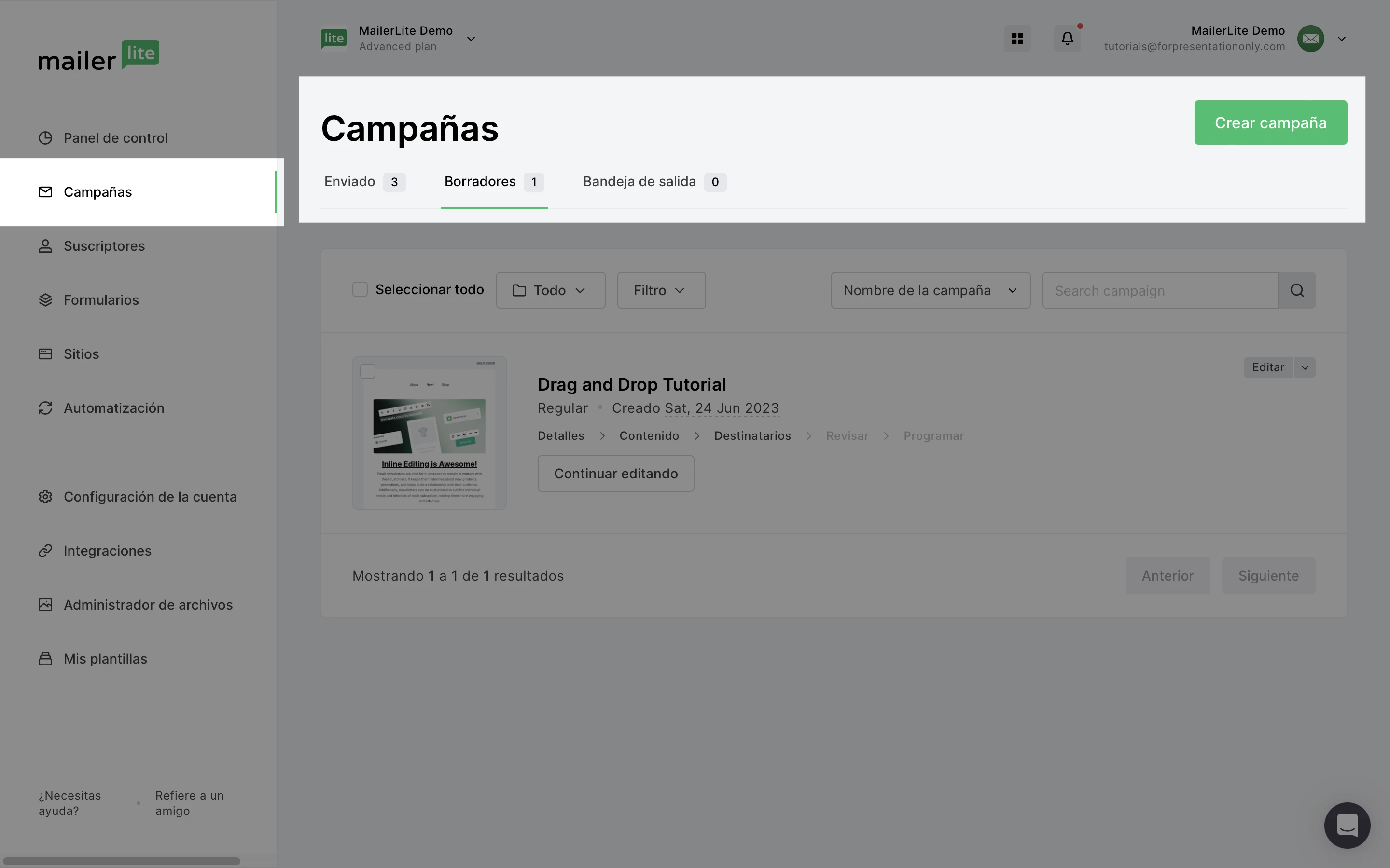 Una campaña es un email newsletter que creas y envías a tus suscriptores seleccionados.