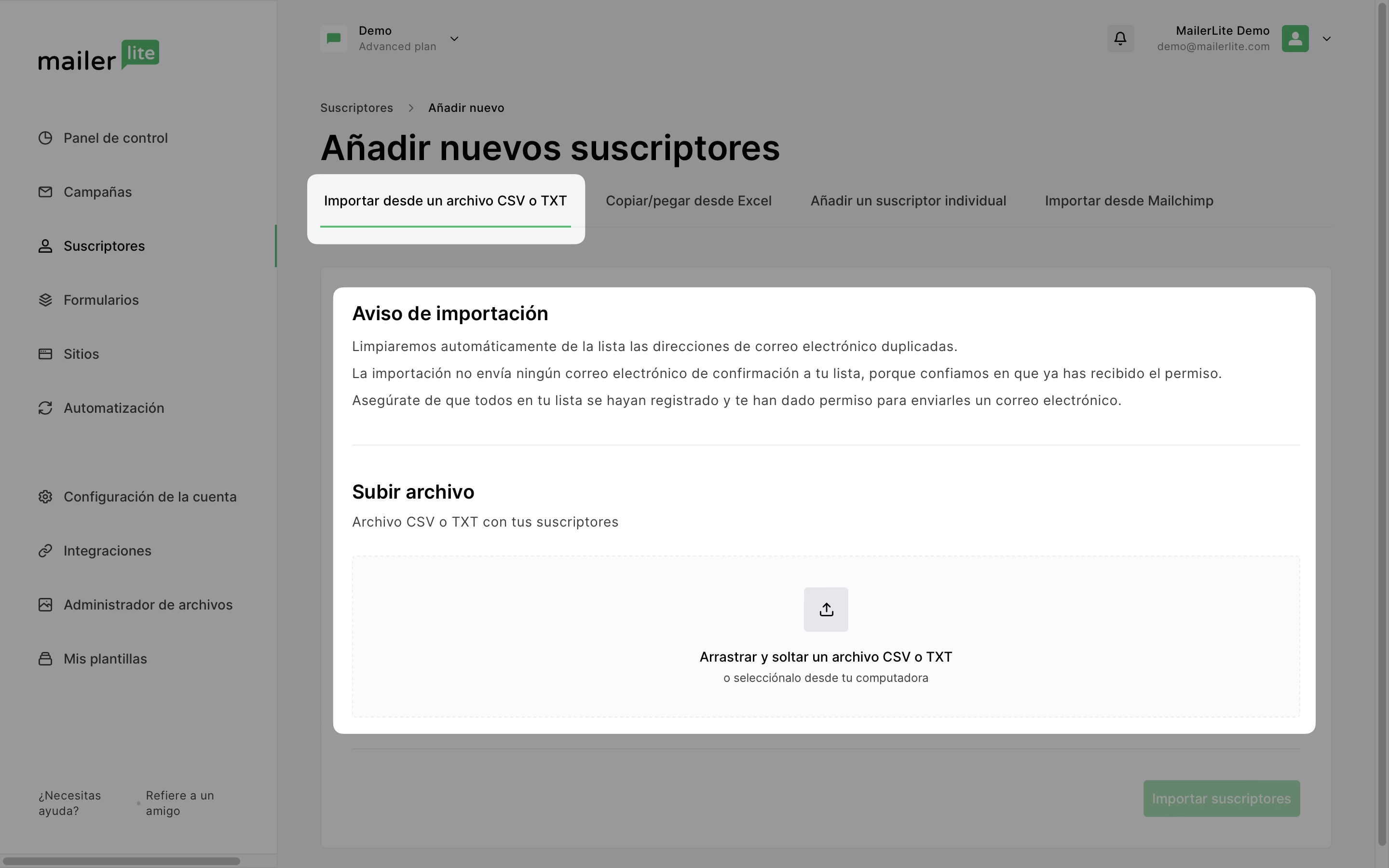 Cómo importar suscriptores desde un archivo . CSV o TXT