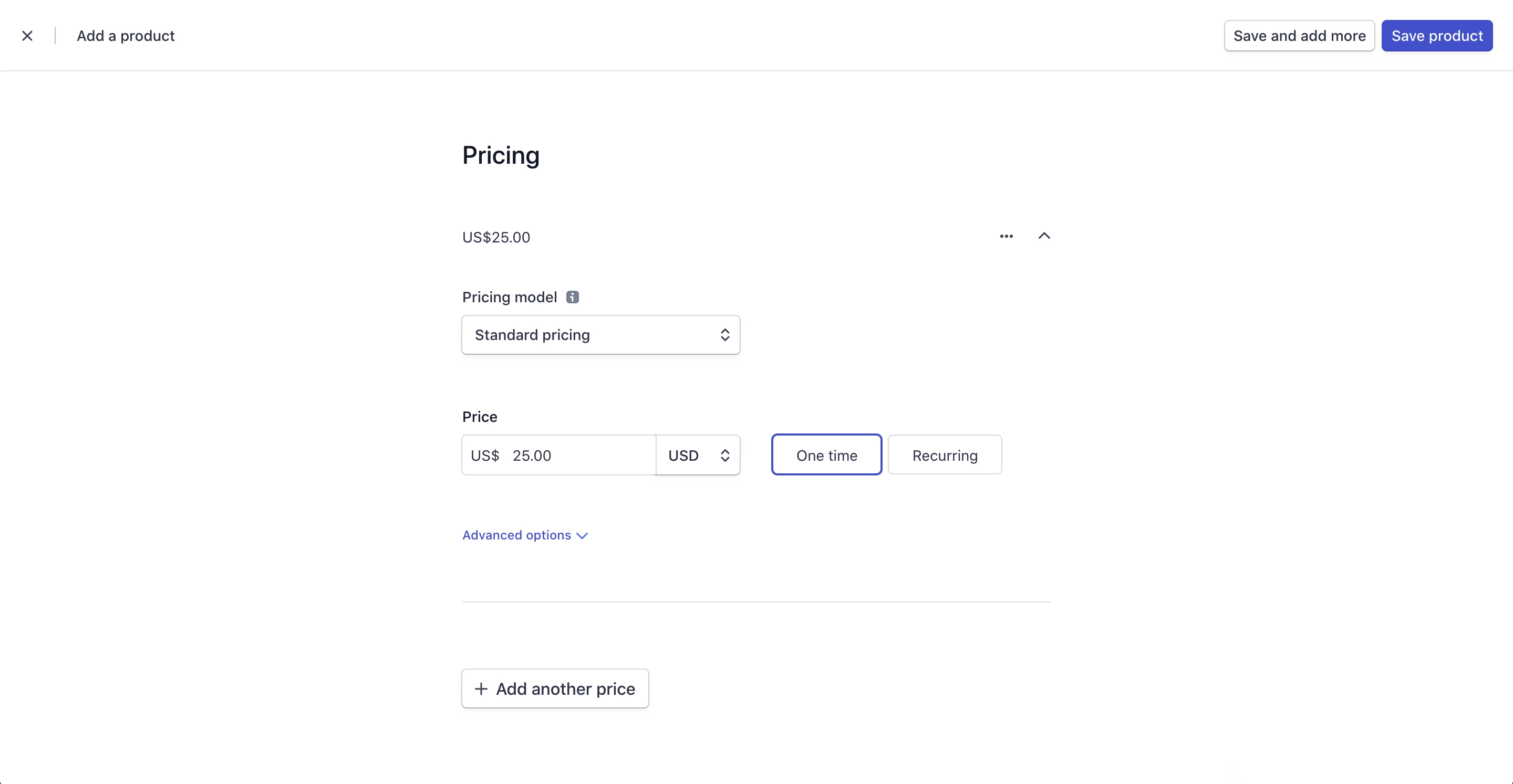 6. Selecciona si el precio que ingresaste es Único o Recurrente.
