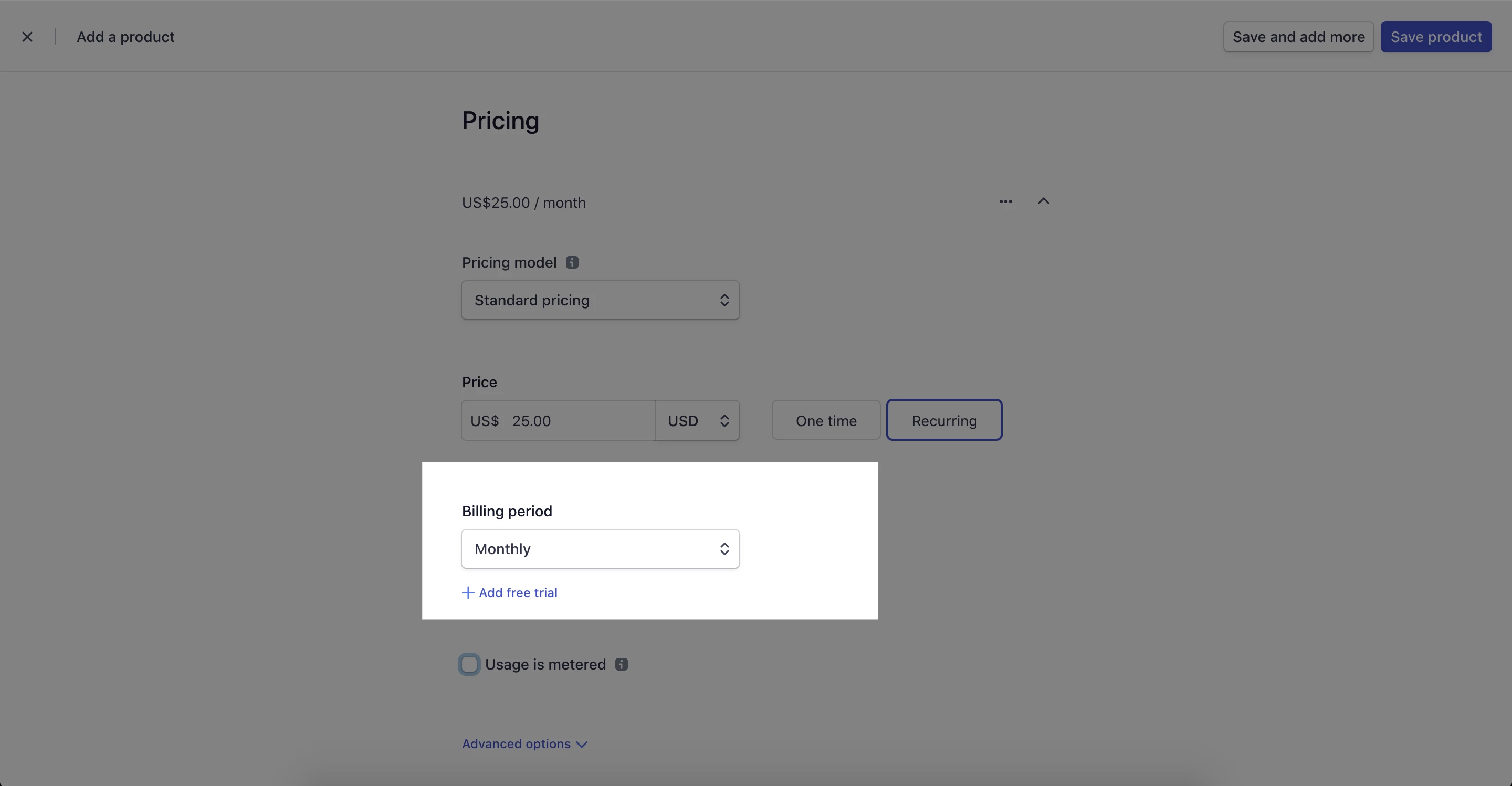 7. Si seleccionaste Recurrente, selecciona la frecuencia con la que deseas que se repita el pago en el campo Período de facturación.