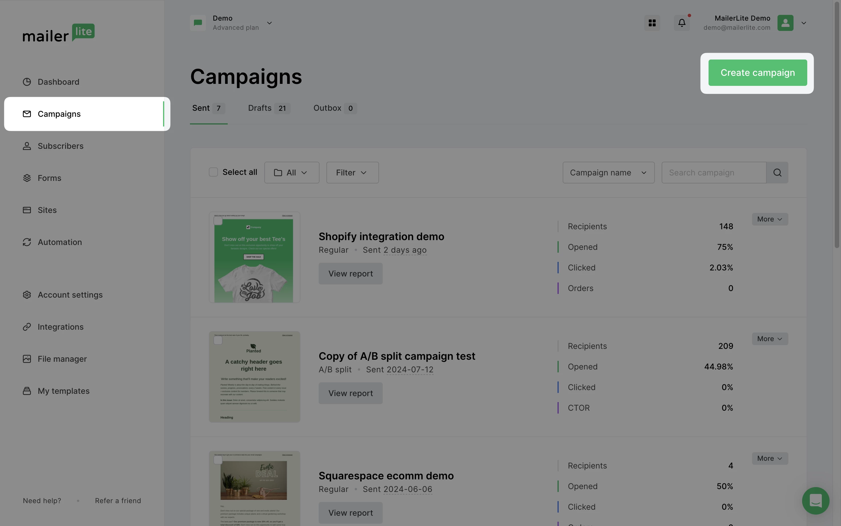 Haz clic en Crear campaña.