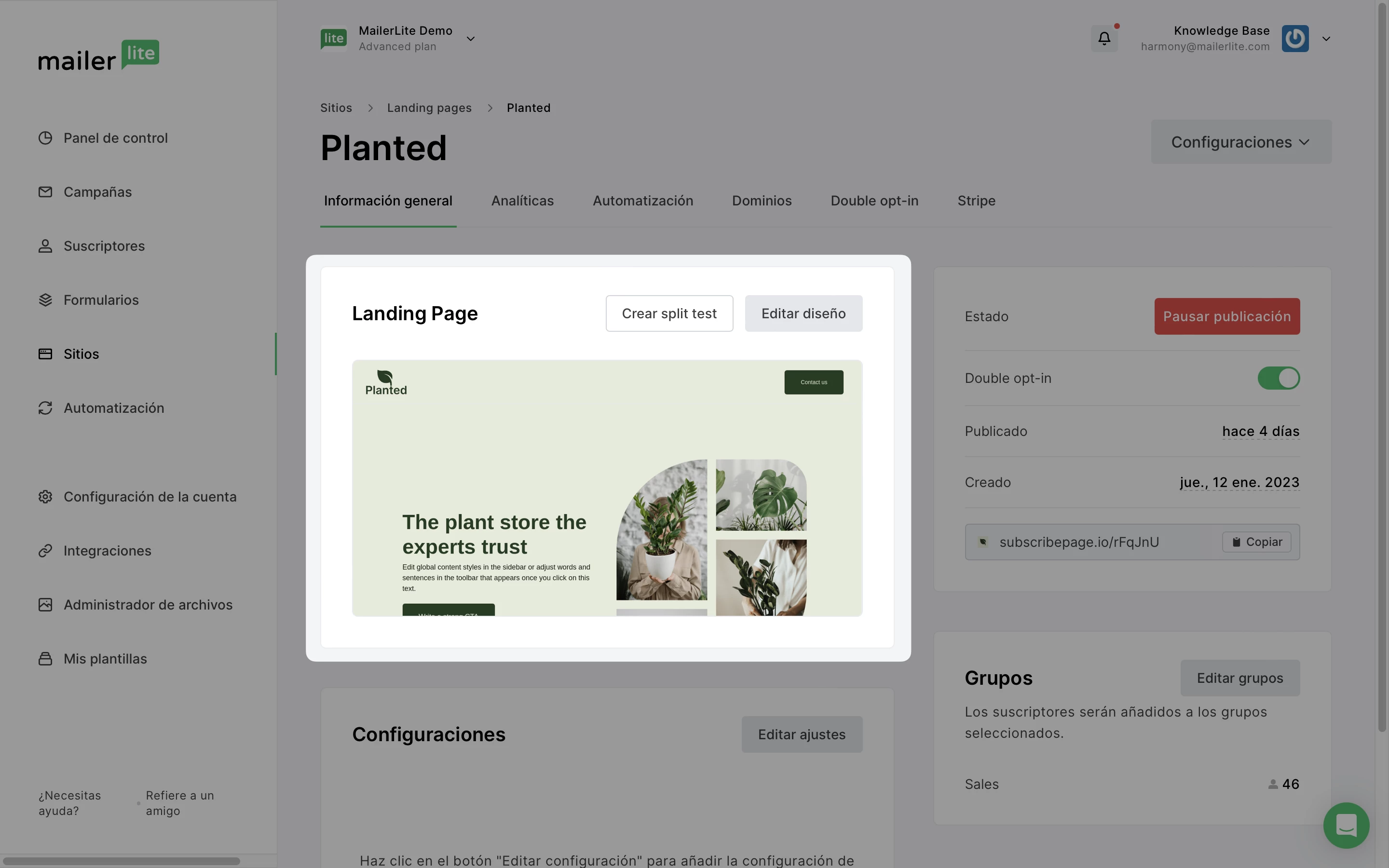 Las pruebas A/B se utilizan para probar el rendimiento de tus landing pages, dejándote con la versión más óptima para maximizar la captación de suscriptores.