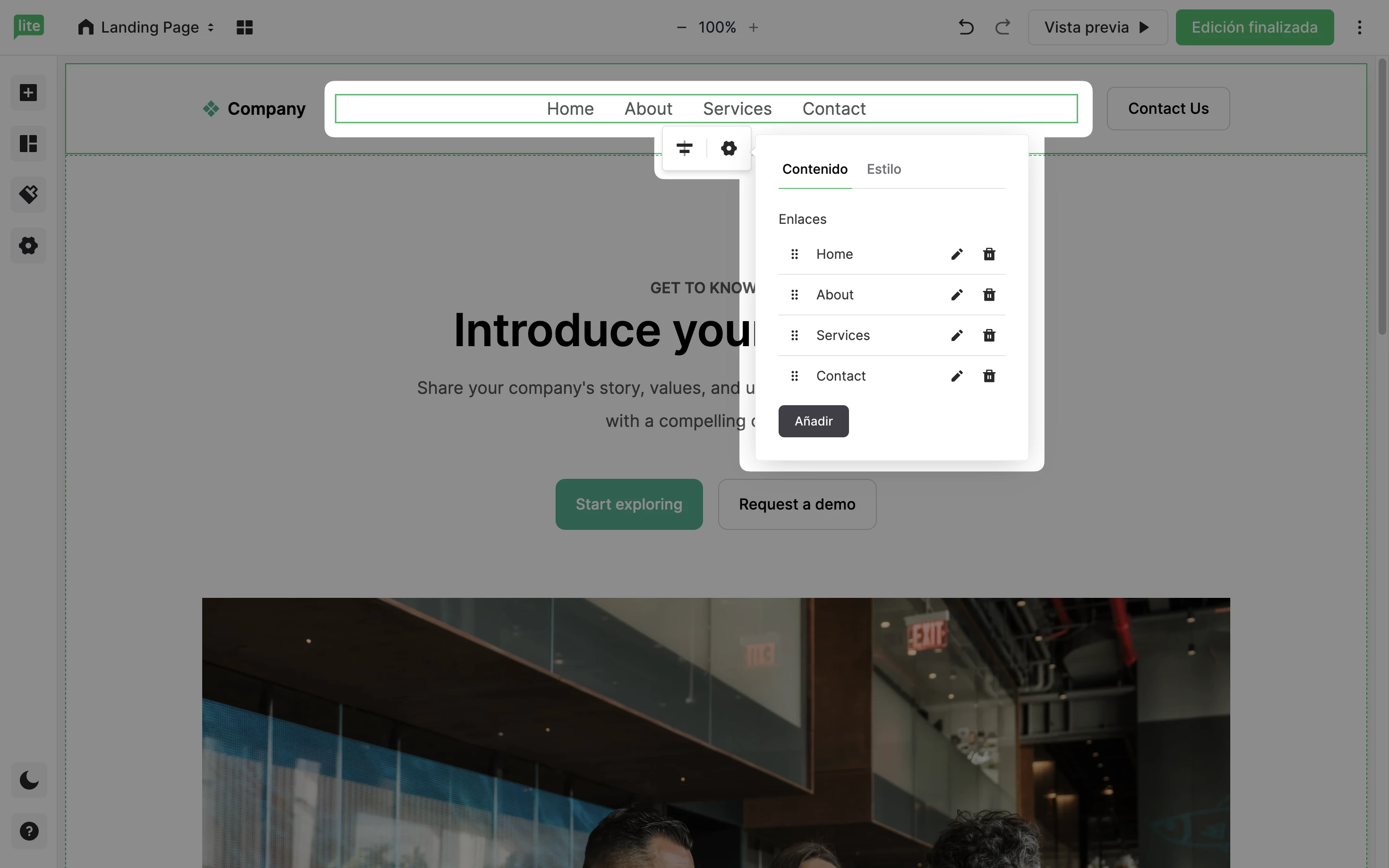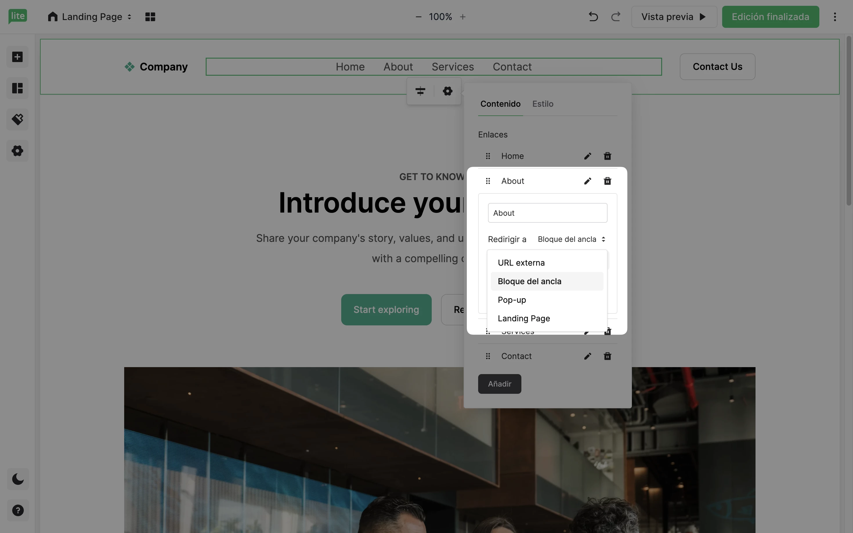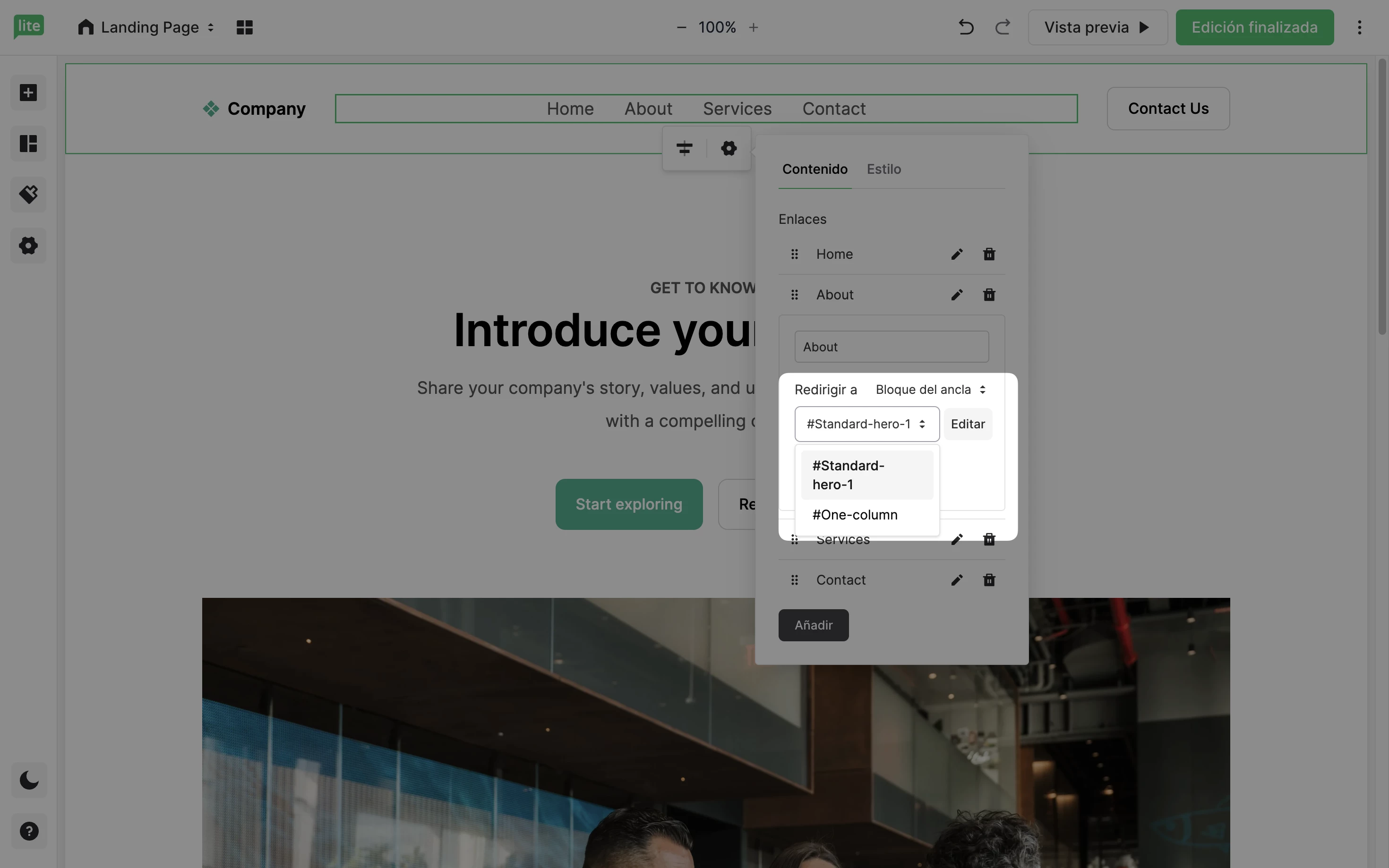 Te recomendamos que utilices la navegación de tu encabezado. Ten en cuenta que esta opción sólo está disponible para las landing pages.