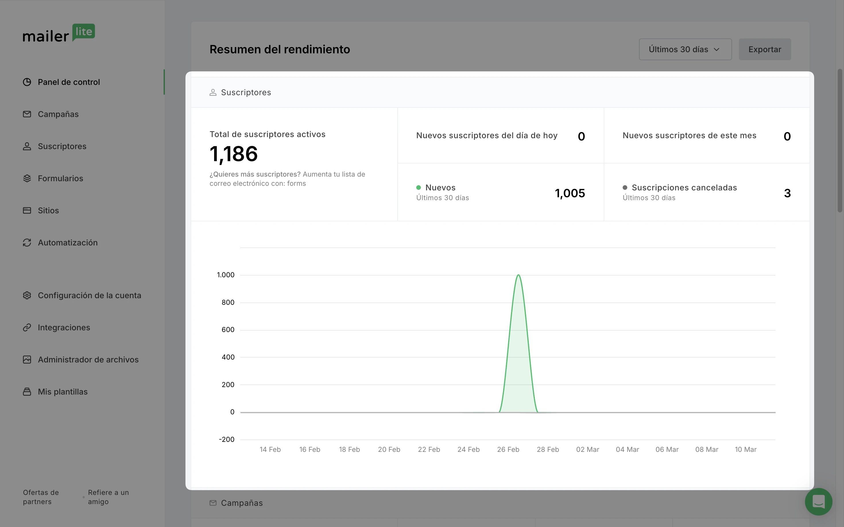 Nuevos suscriptores al día: La cantidad de suscriptores activos que se han apuntado hoy a tu lista.