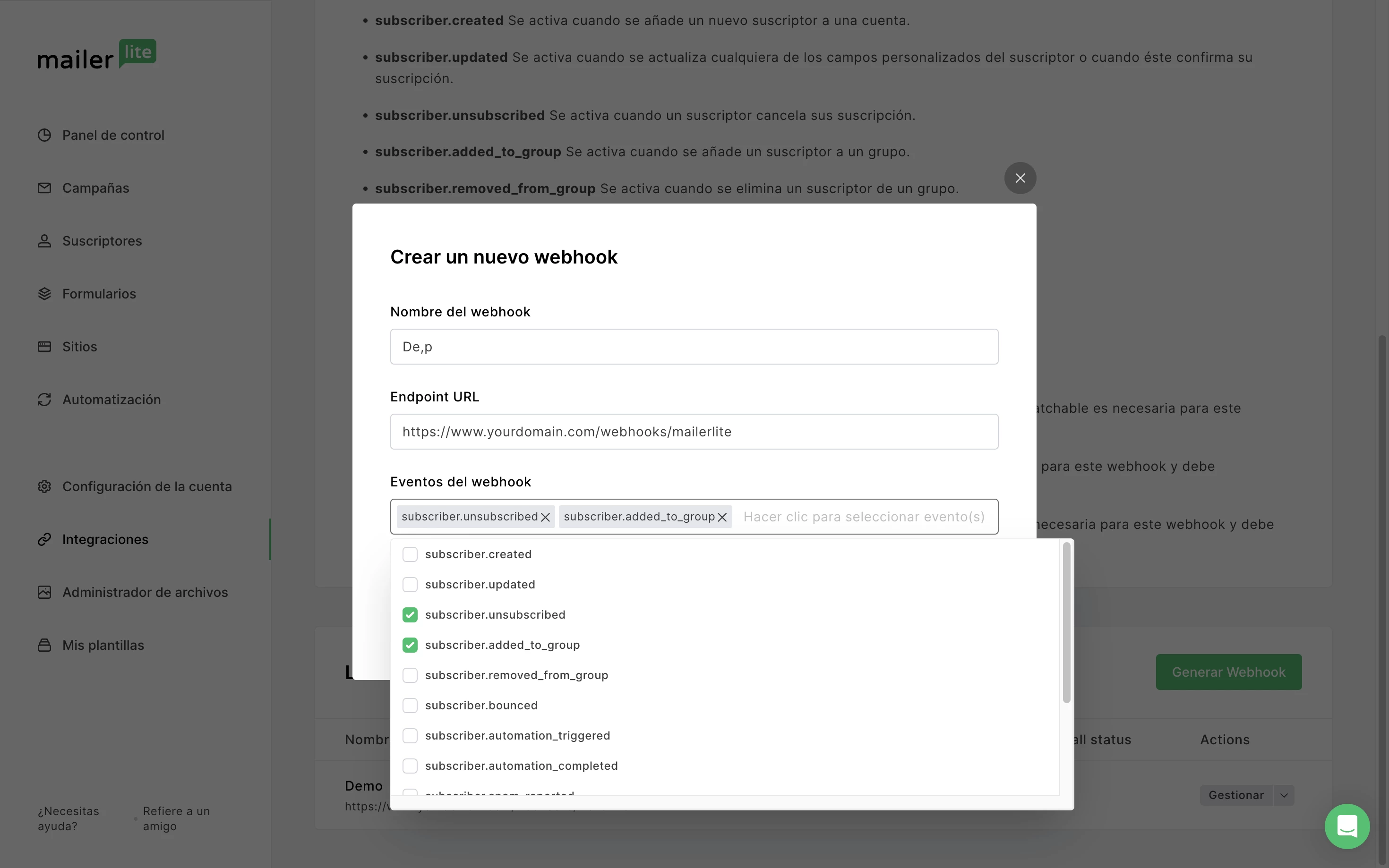 Configurar webhooks en MailerLite