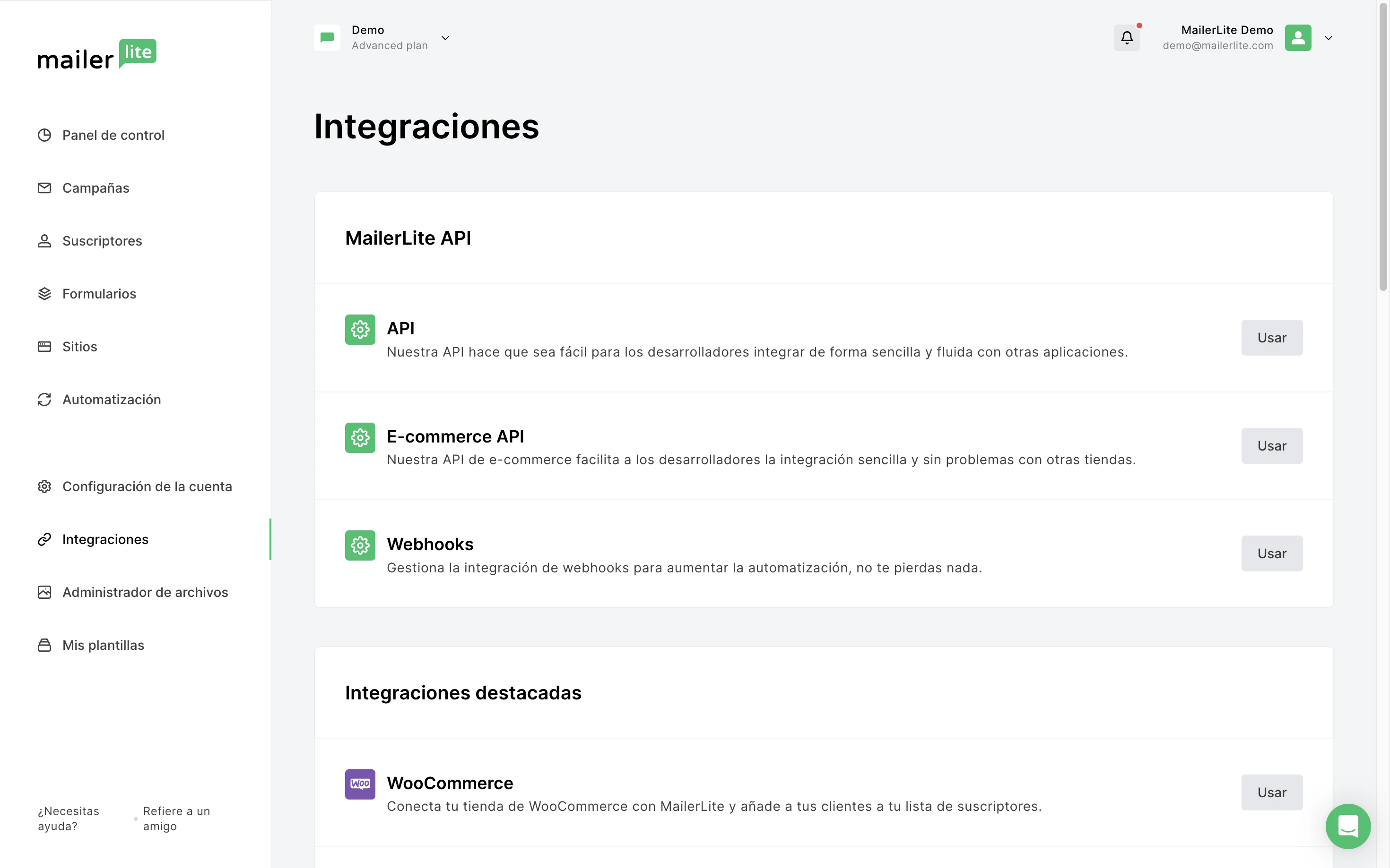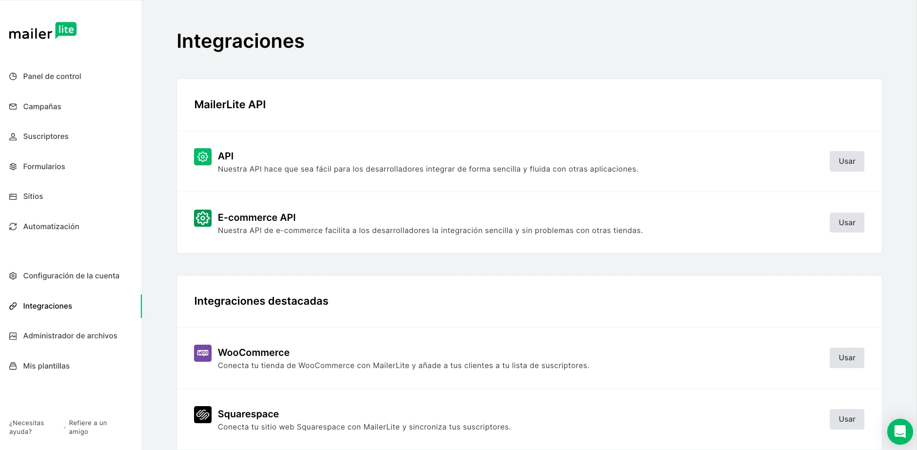 ¡Soporte limitado! Nuestro equipo de atención al cliente está listo para ayudarte con las preguntas relacionadas con las integraciones nativas de MailerLite; sin embargo, no ofrecemos soporte para configuraciones de API personalizadas o integraciones de terceros.