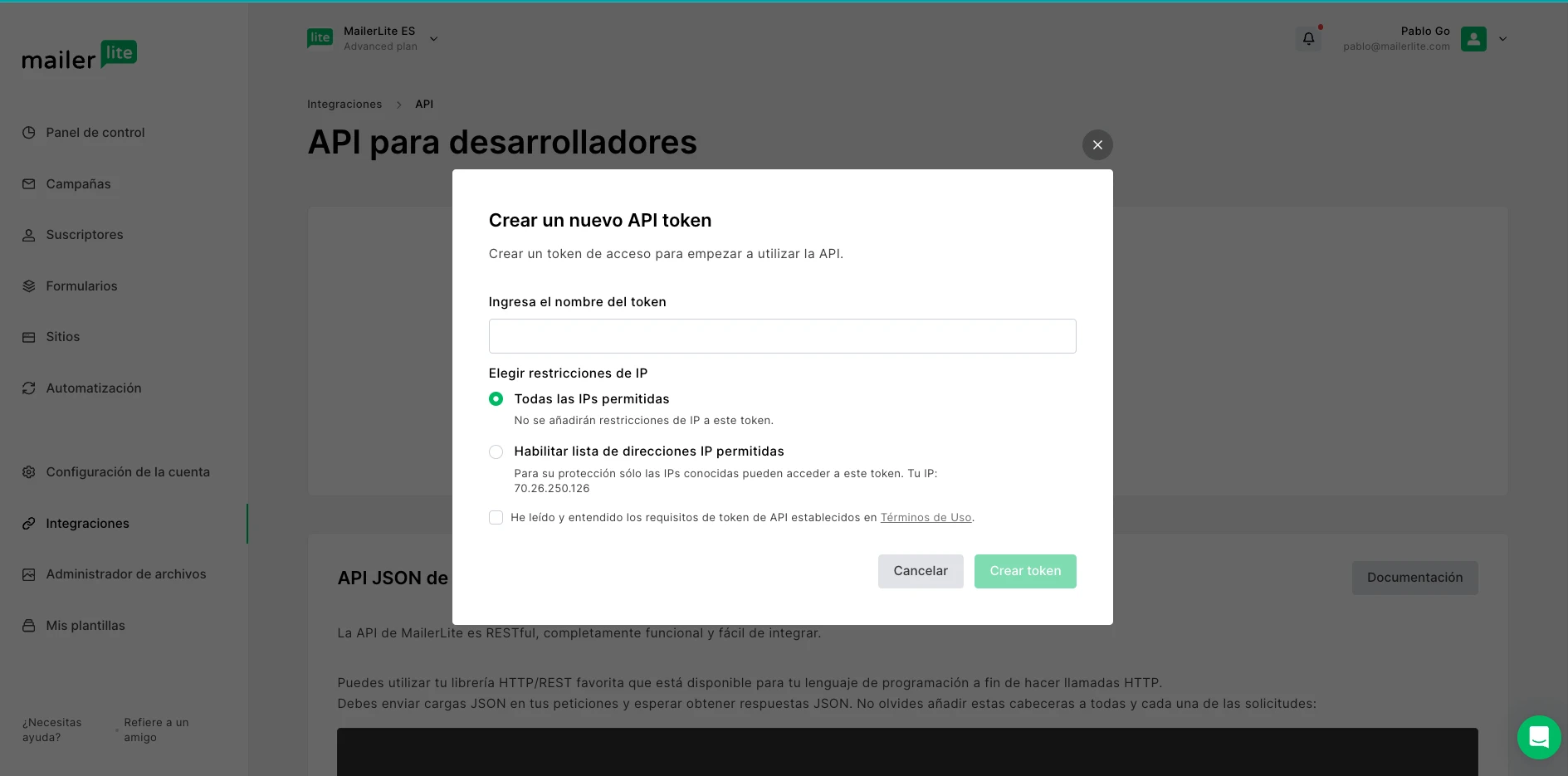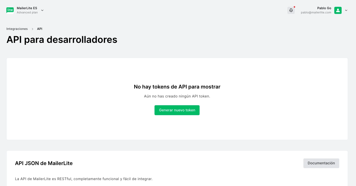 Dónde encontrar la clave API de tu cuenta MailerLite (Generar token API)