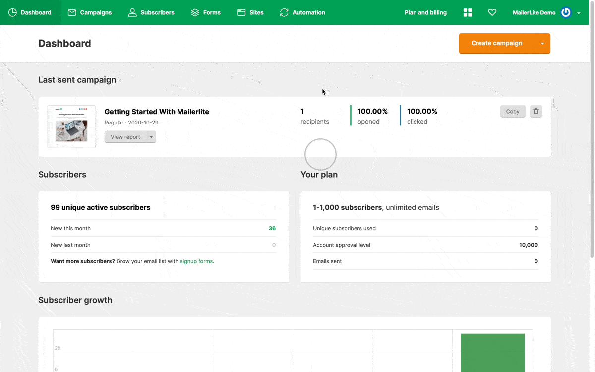 En 2022, se lanzó una nueva versión de MailerLite que presenta una interfaz actualizada y una infraestructura diseñada para admitir funcionalidades avanzadas. Todas las cuentas creadas después de marzo de 2022 usarán la nueva versión. Las cuentas creadas antes de esta fecha usarán nuestra versión anterior, a la que hemos renombrado MailerLite Clásico.