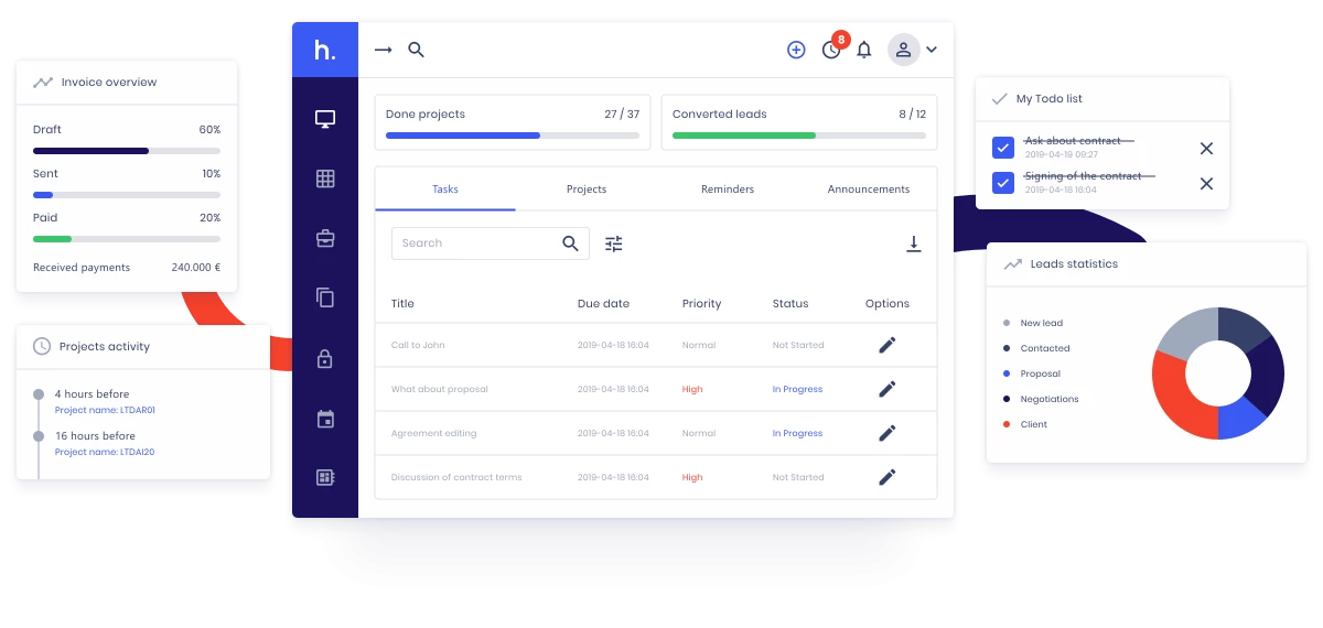 Hanna CRM is a platform where you can manage your customer database, sales, projects, tasks, reports, and nourish customer relationships.