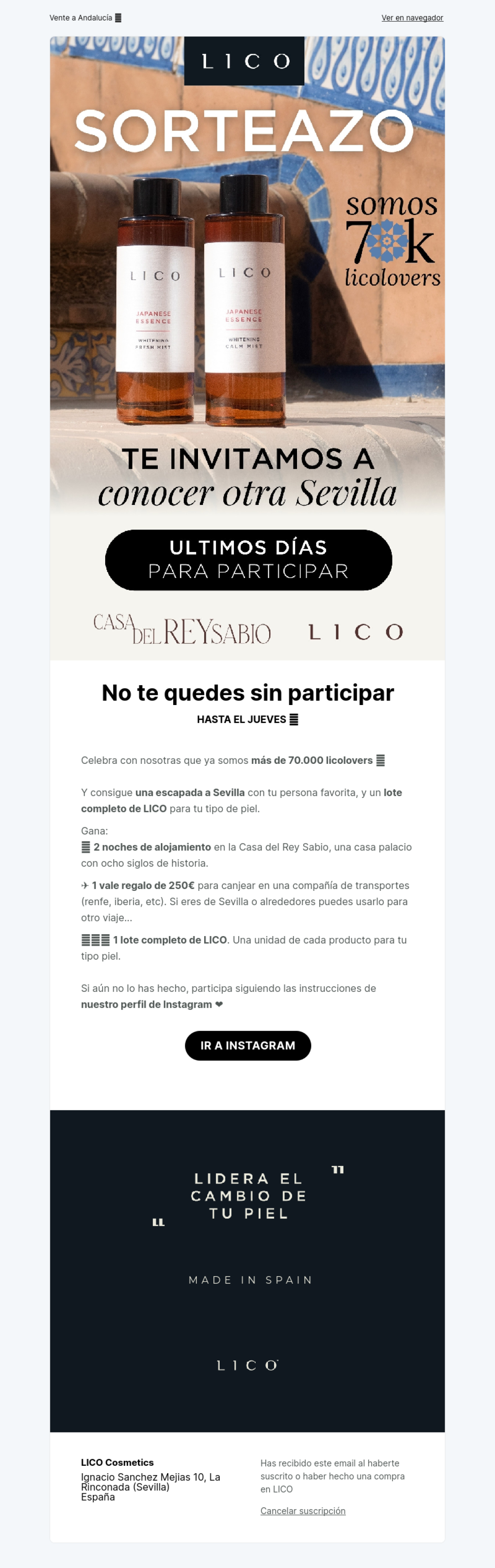 LICO Cosmetics ejemplo - Diseño de MailerLite
