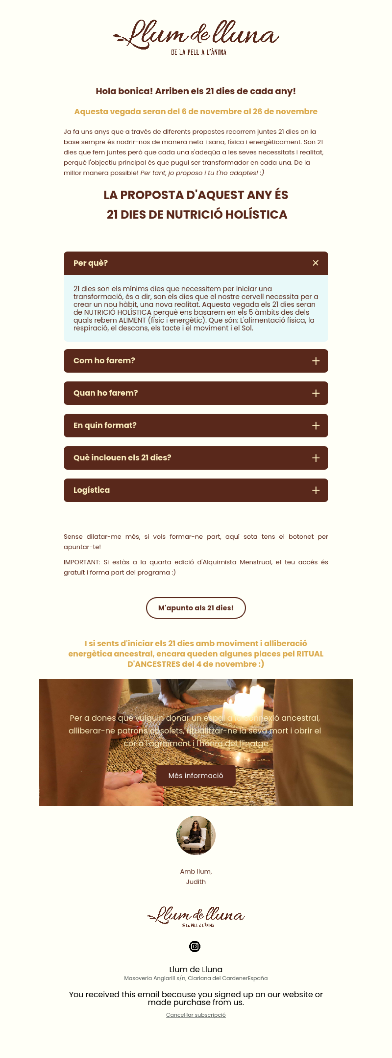 Llum de Lluna ejemplo - Diseño de MailerLite