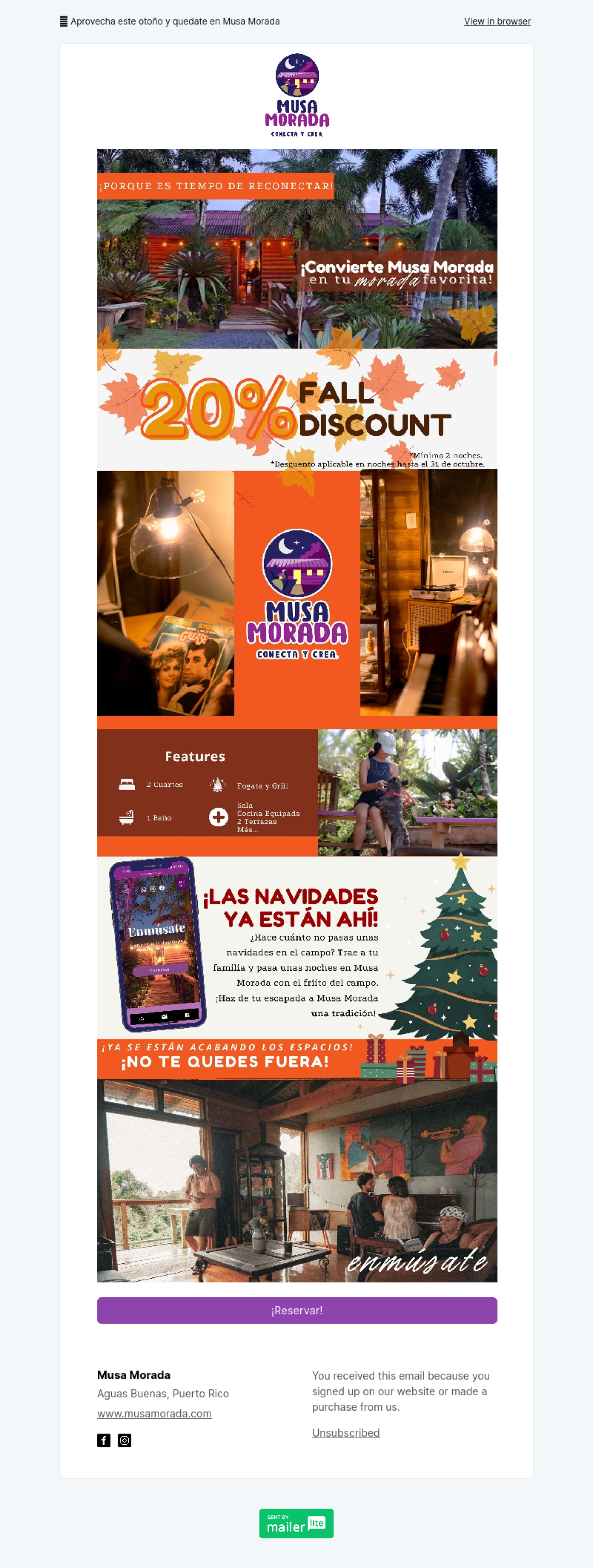 Musa Morada ejemplo - Diseño de MailerLite