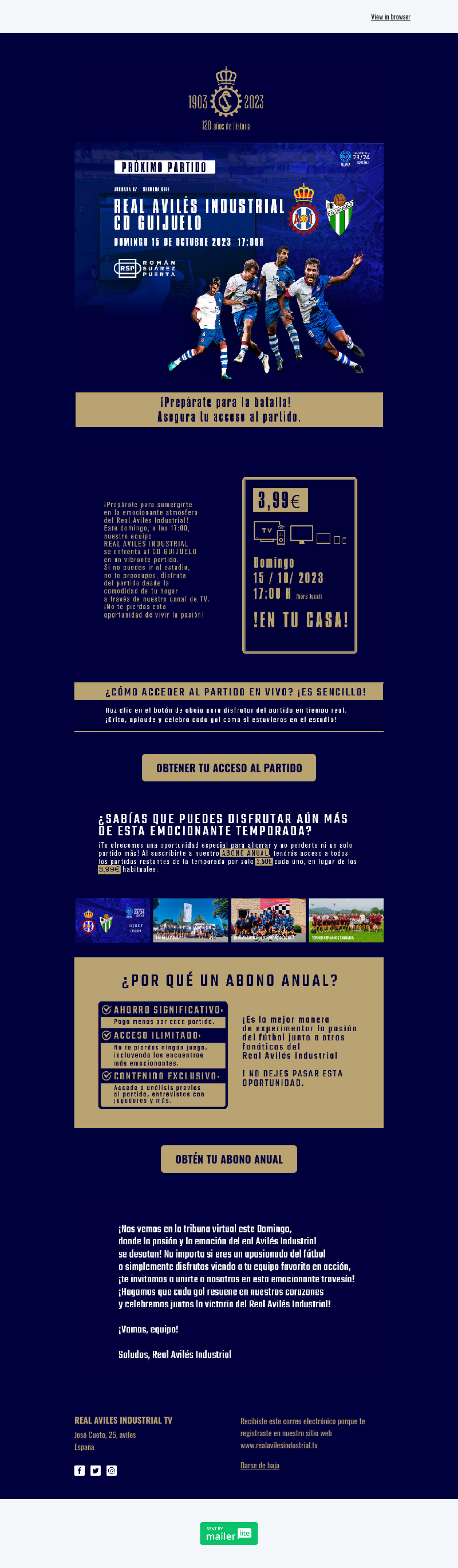 Real Avilés Industrial TV ejemplo - Diseño de MailerLite