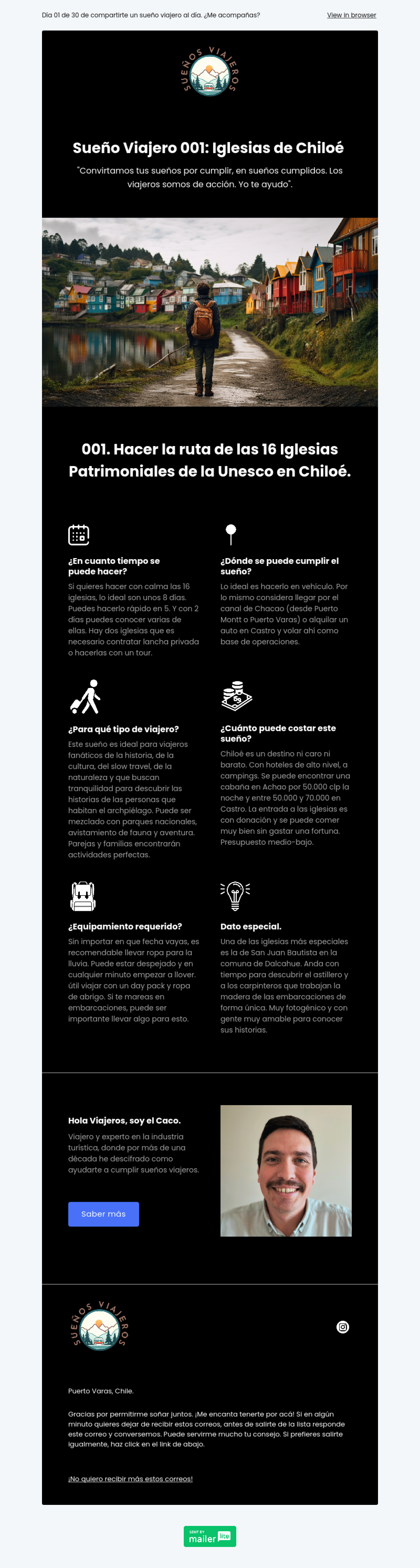 Sueños Viajeros ejemplo - Diseño de MailerLite