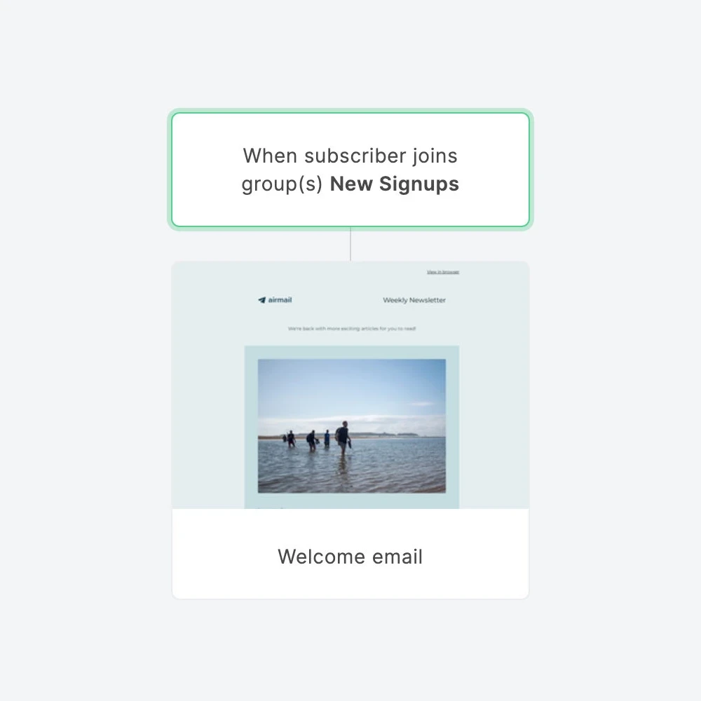 Con MailerLite, los datos de tus suscriptores están disponibles al instante para automatizaciones. Puedes activar flujos de trabajo basados en suscripciones, clics en enlaces, compras y mucho más, sin trucos ni soluciones complicadas.