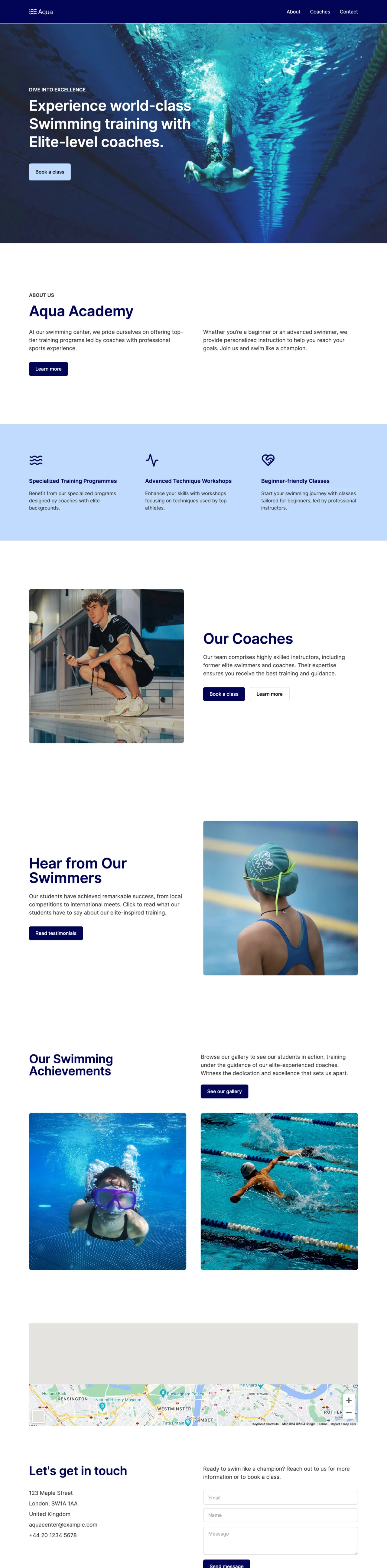 Fomenta la inscripción a las clases de tu escuela de natación utilizando nuestra plantilla. Utiliza secciones específicas para mostrar la oferta de cursos y horarios, el programa de aprendizaje, presentar a los instructores y mucho más; y utiliza nuestro intuitivo editor de arrastrar y soltar para personalizar tu página como más te guste.
