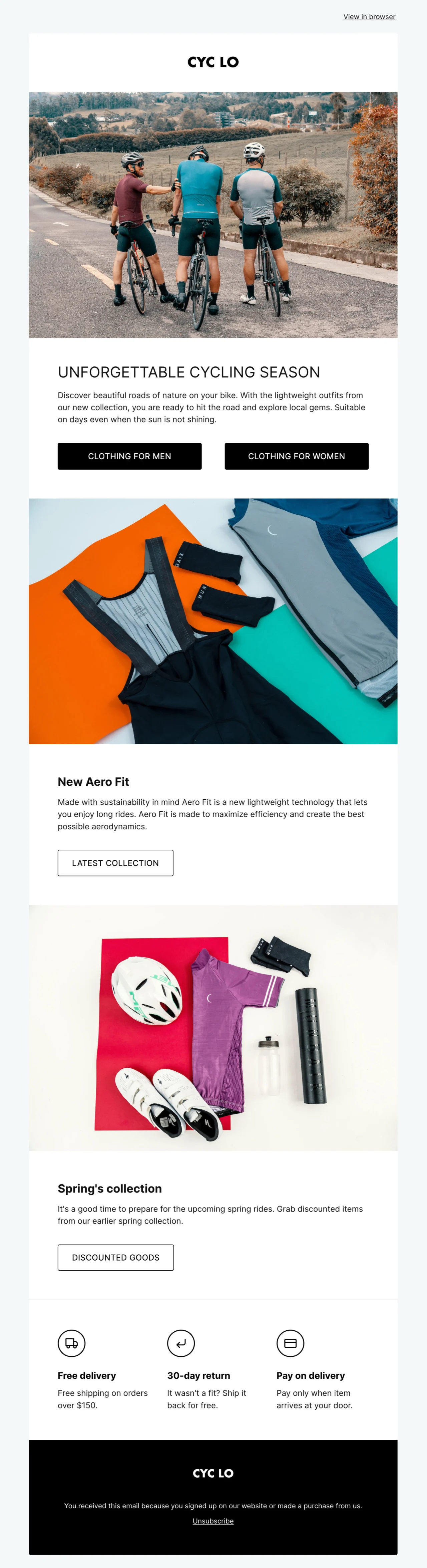 Mira la plantilla de newsletter de equipamiento deportivo. Navega por nuestra galería de plantillas de newsletters, inspírate y comienza hoy a crear el tuyo MailerLite.