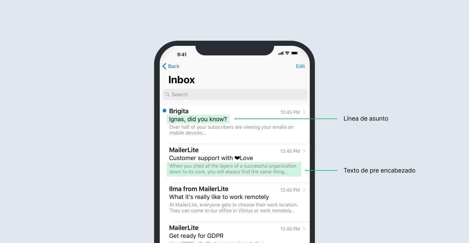 El objetivo es que el lector escanee tu correo electrónico para ver si merece la pena profundizar en él. Esto es aún más importante para los dispositivos móviles, donde el texto está comprimido.