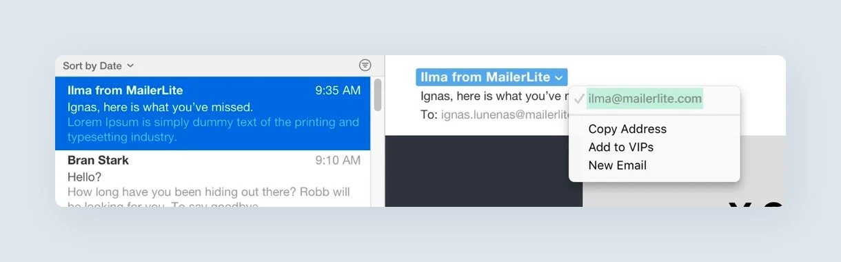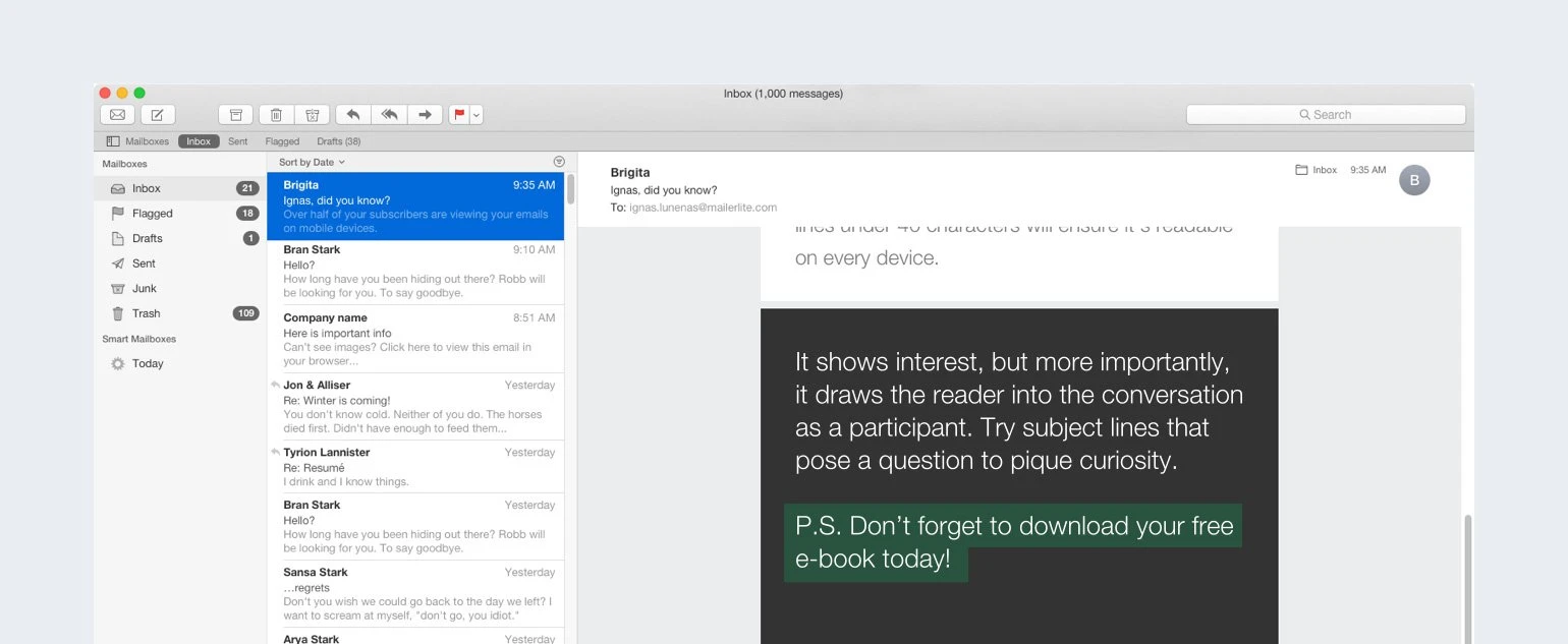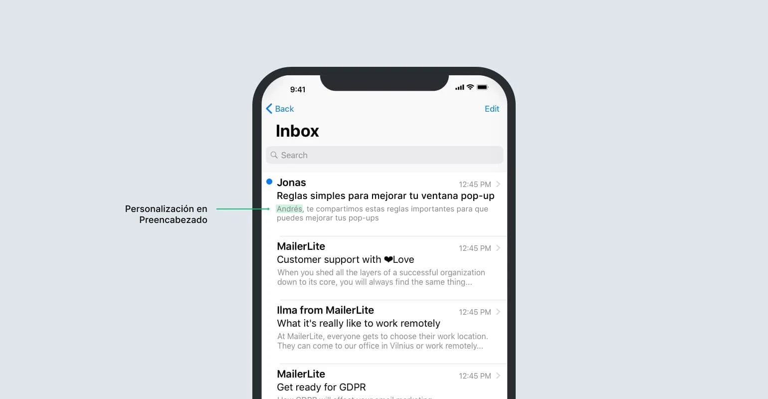 Cuando el correo electrónico proviene de una persona real, por ejemplo "De: PabloHG@mailerlite.com", en lugar de una empresa incorpórea, agrega un toque humano que es más difícil de ignorar.