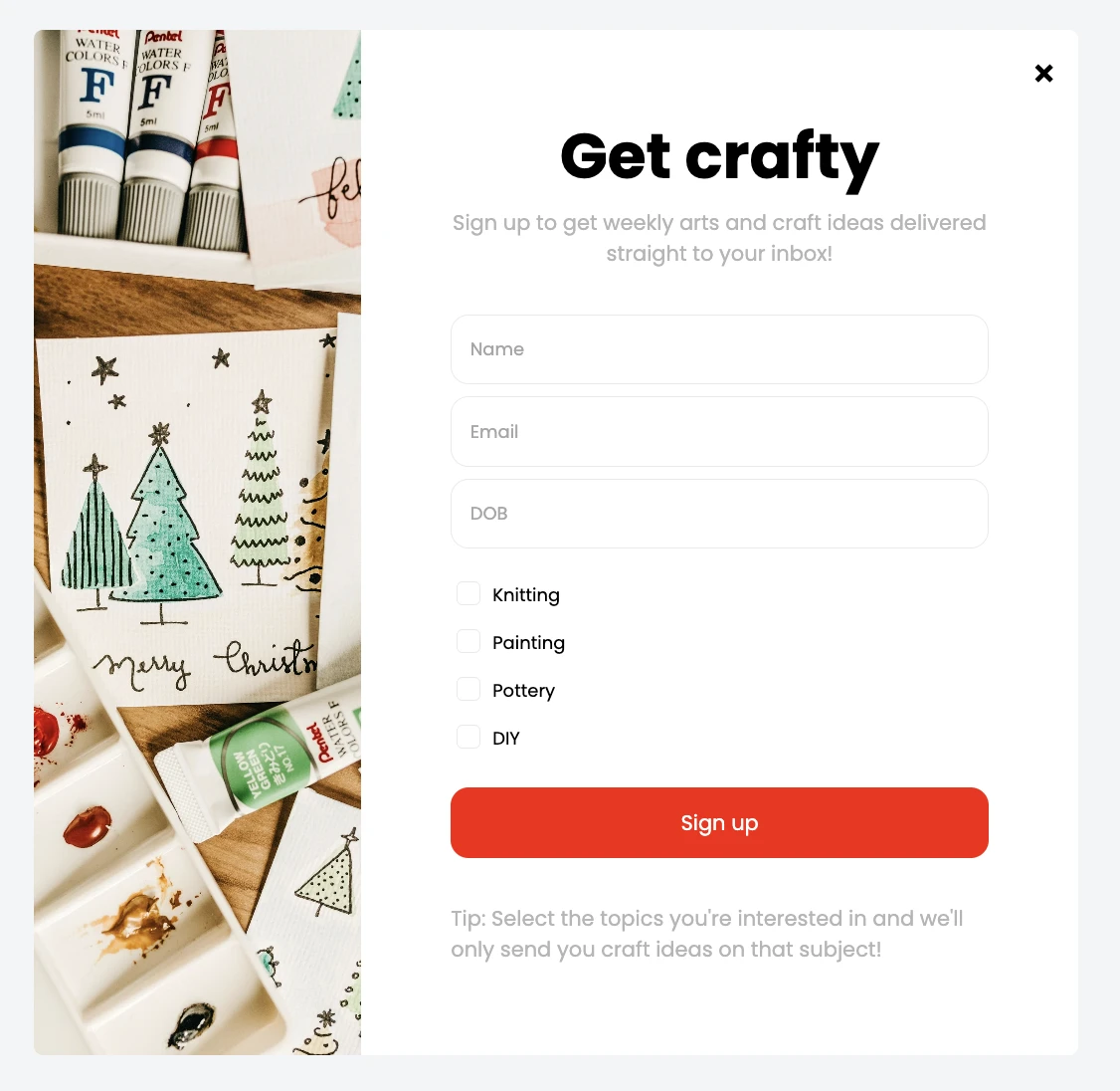 La clave es no exagerar. Si tu formulario es demasiado largo la gente no se molestará en suscribirse. Una regla general es no tener más de 3-4 campos, ¡así que elige tus categorías sabiamente!